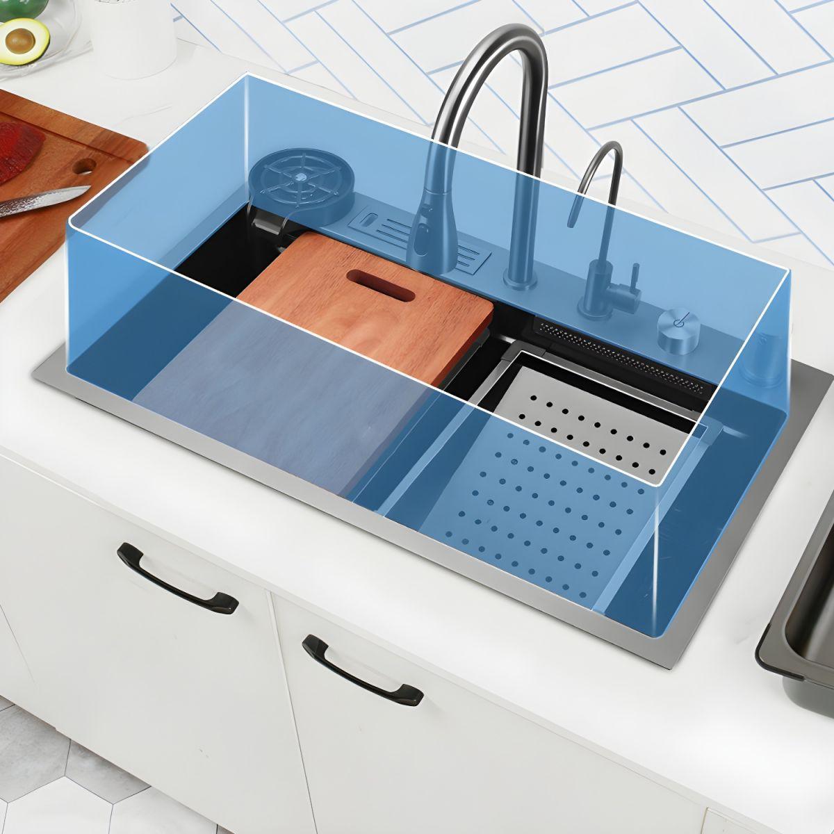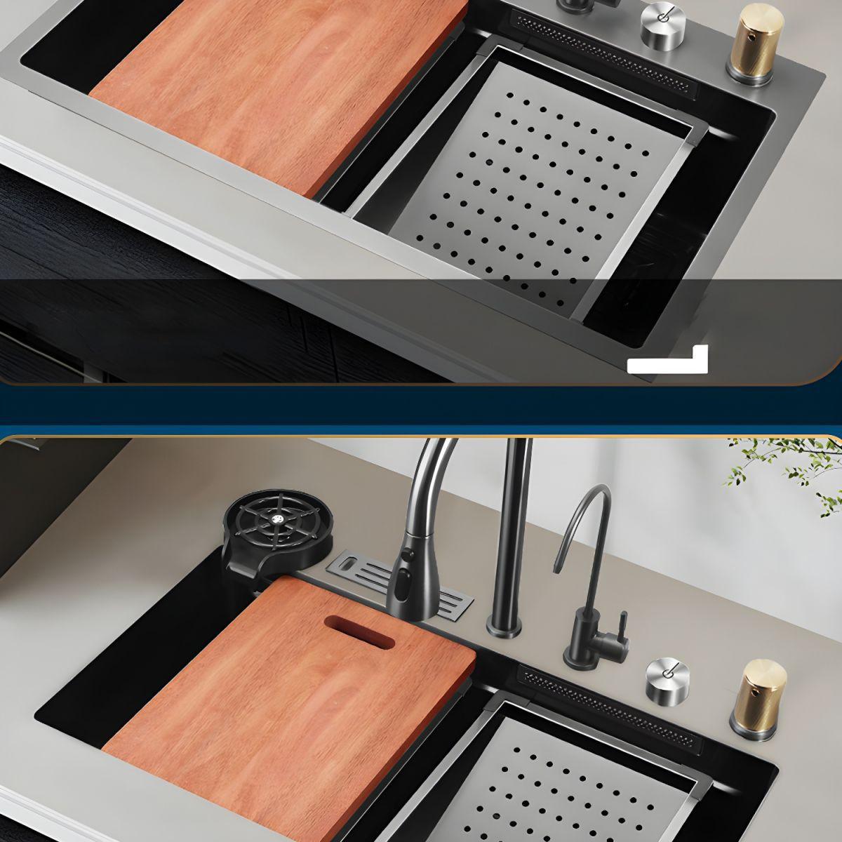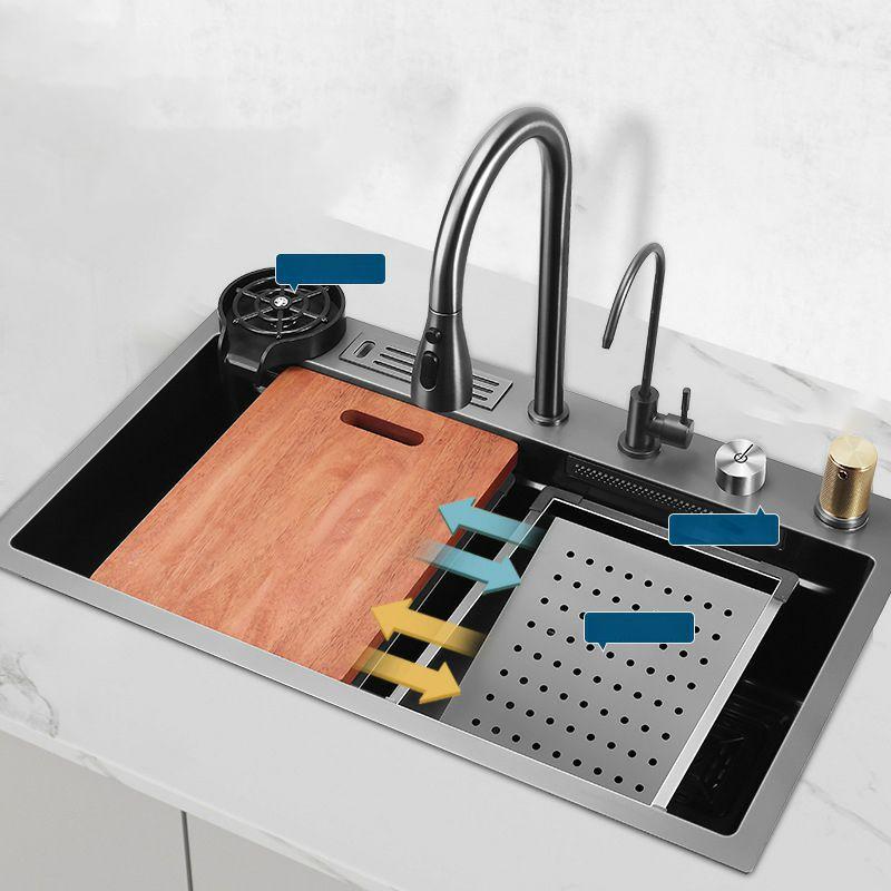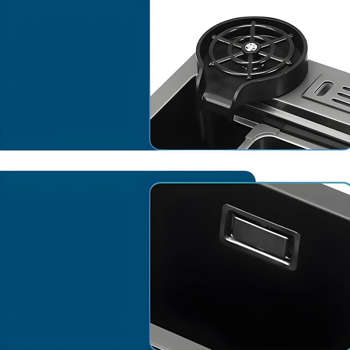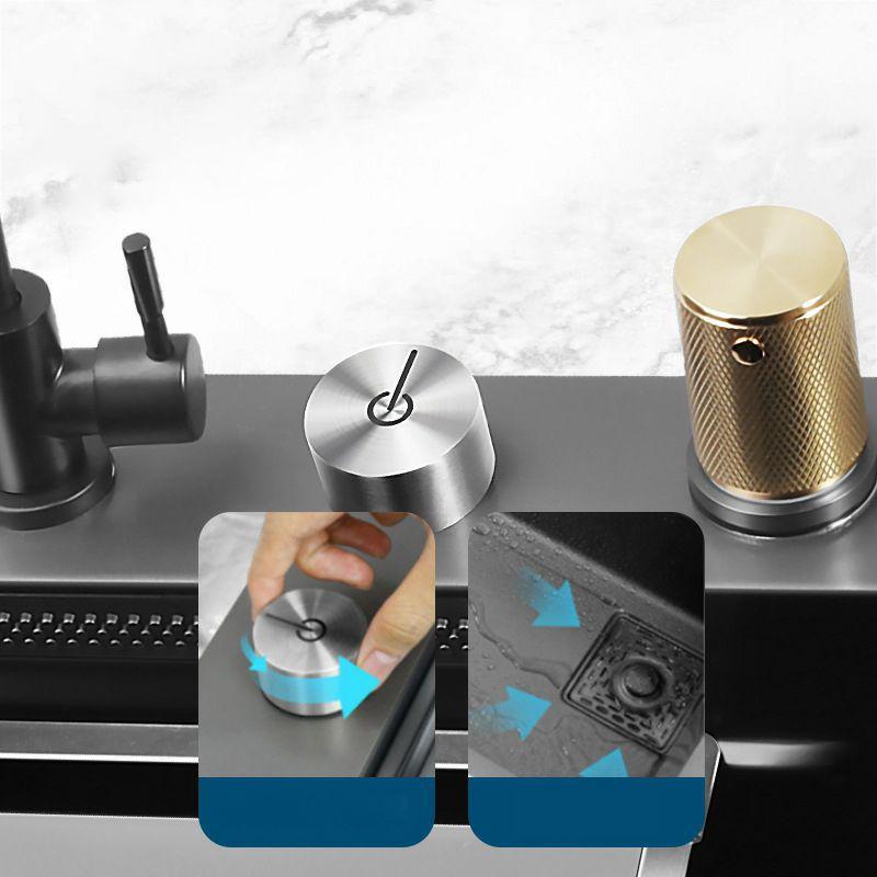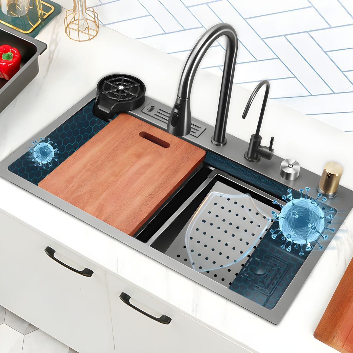 Pia de chuva voadora de cozinha com suporte de faca nano preto engrossado multi-funcional vegetal pia pia mesa de controle de mesa de água lençol freático