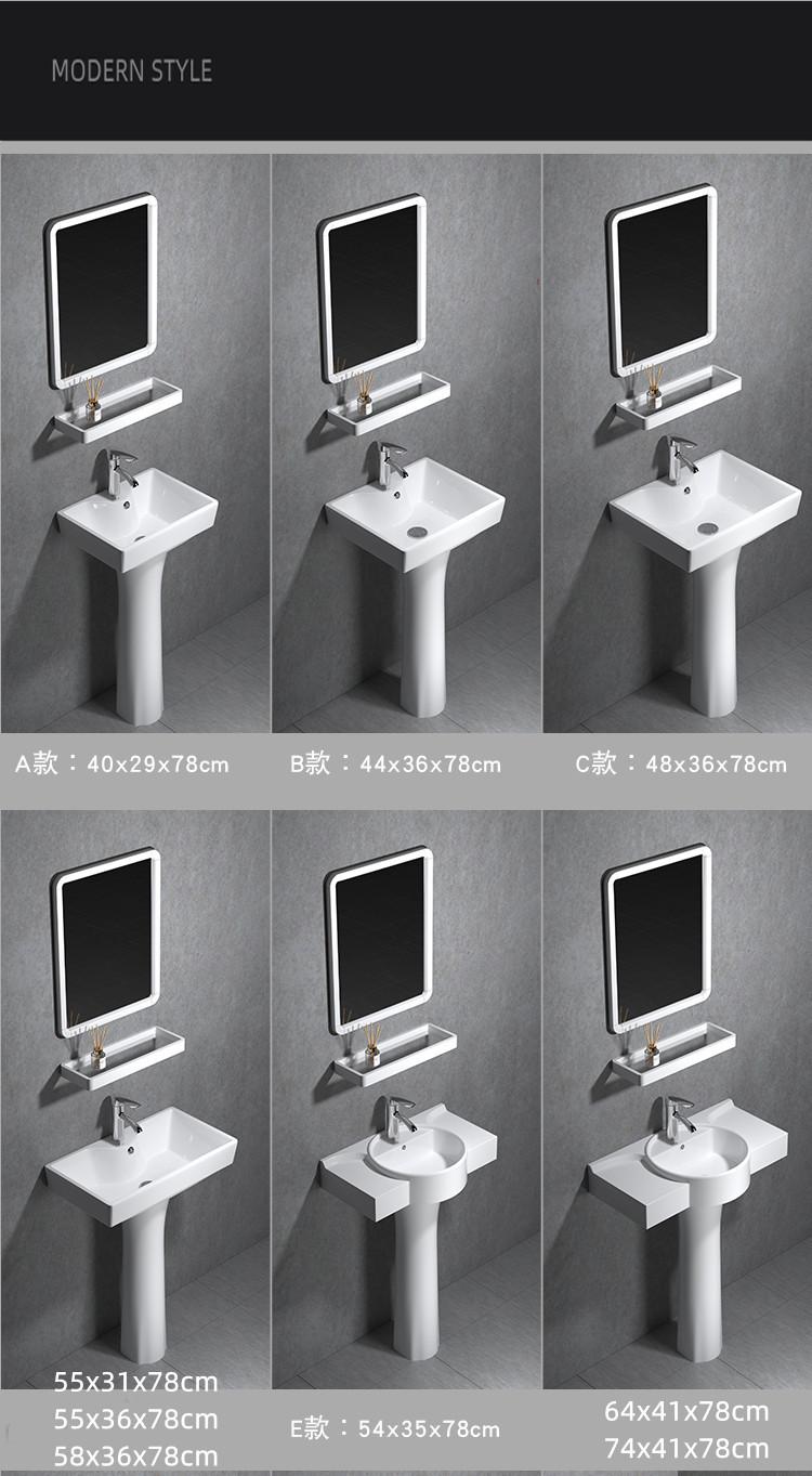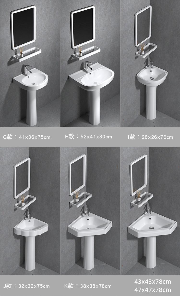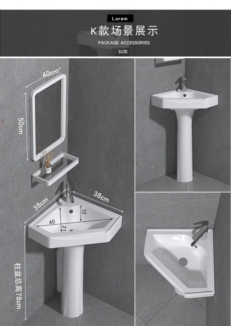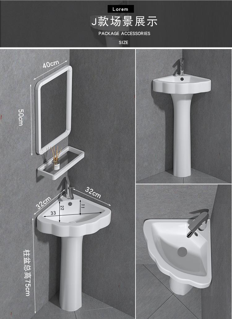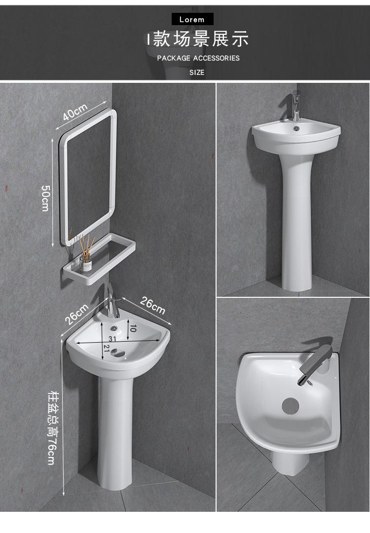 Lavatório de coluna Pequeno Apartamento Banheiro Triângulo Lavatório de coluna Integrado Cerâmica Mini Lavatório de piso Varanda