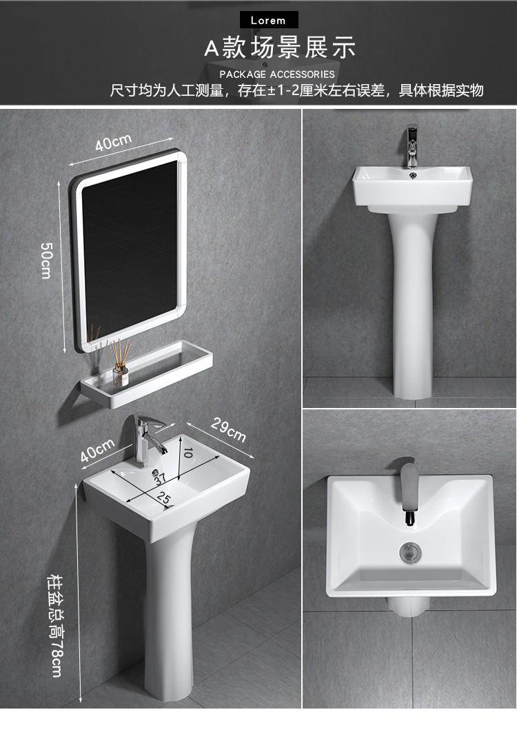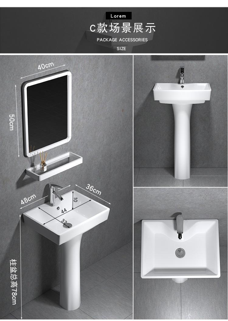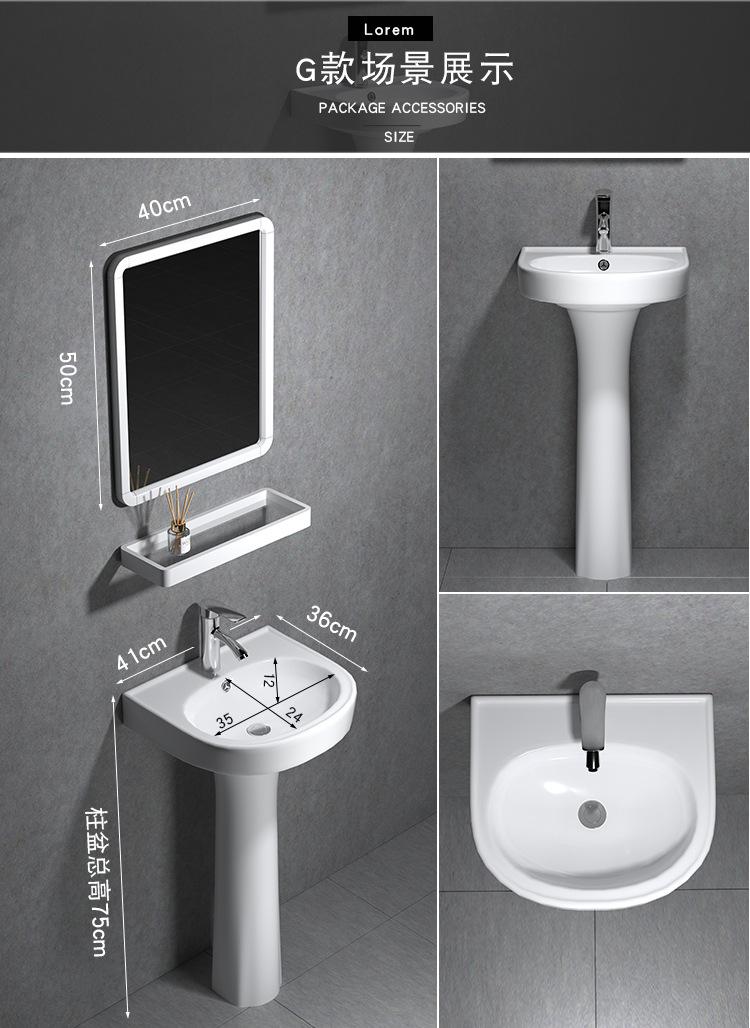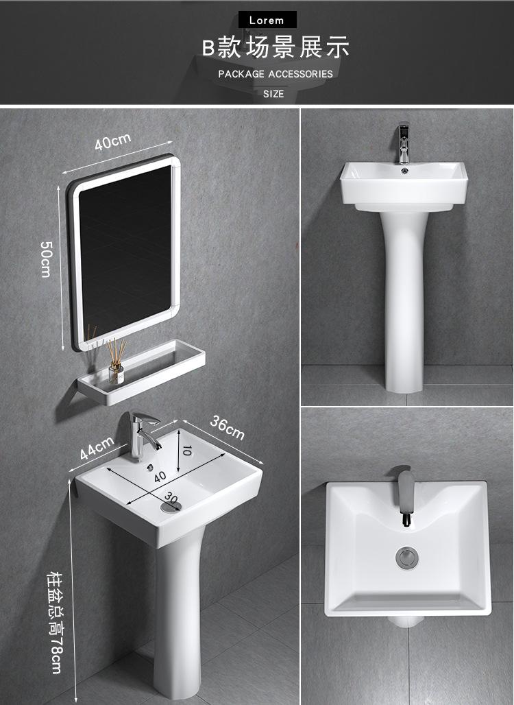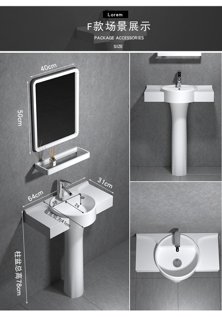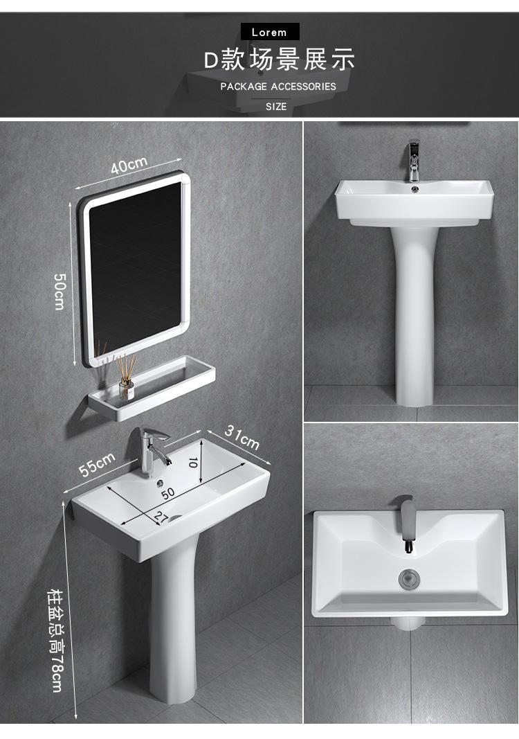 Lavatório de coluna Pequeno Apartamento Banheiro Triângulo Lavatório de coluna Integrado Cerâmica Mini Lavatório de piso Varanda