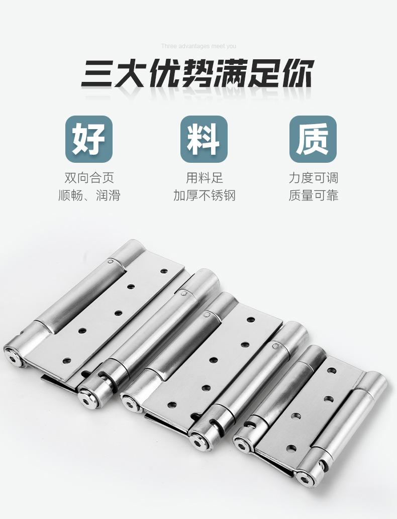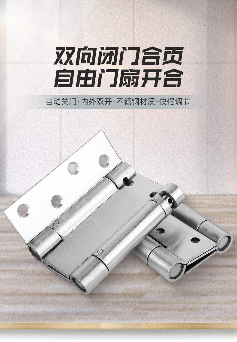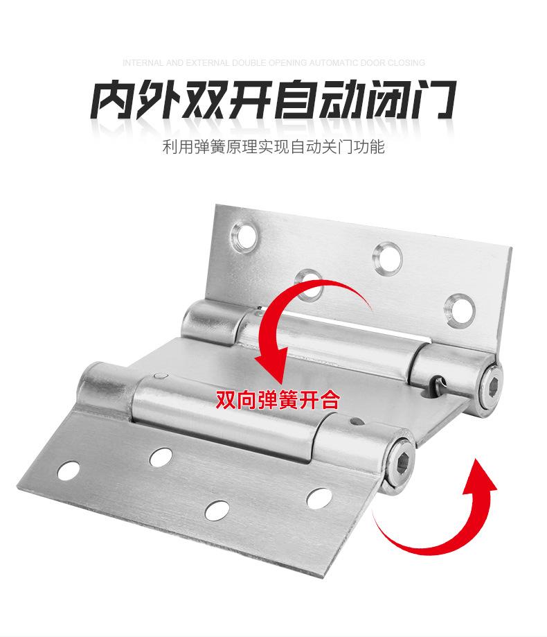 Compre Dobradiça de aço inoxidável com mola de abertura dupla, abertura interna e externa, fecho de porta bidirecional livre, dobradiça de retorno de fechamento automático para porta jeans no atacado no Joom.pro