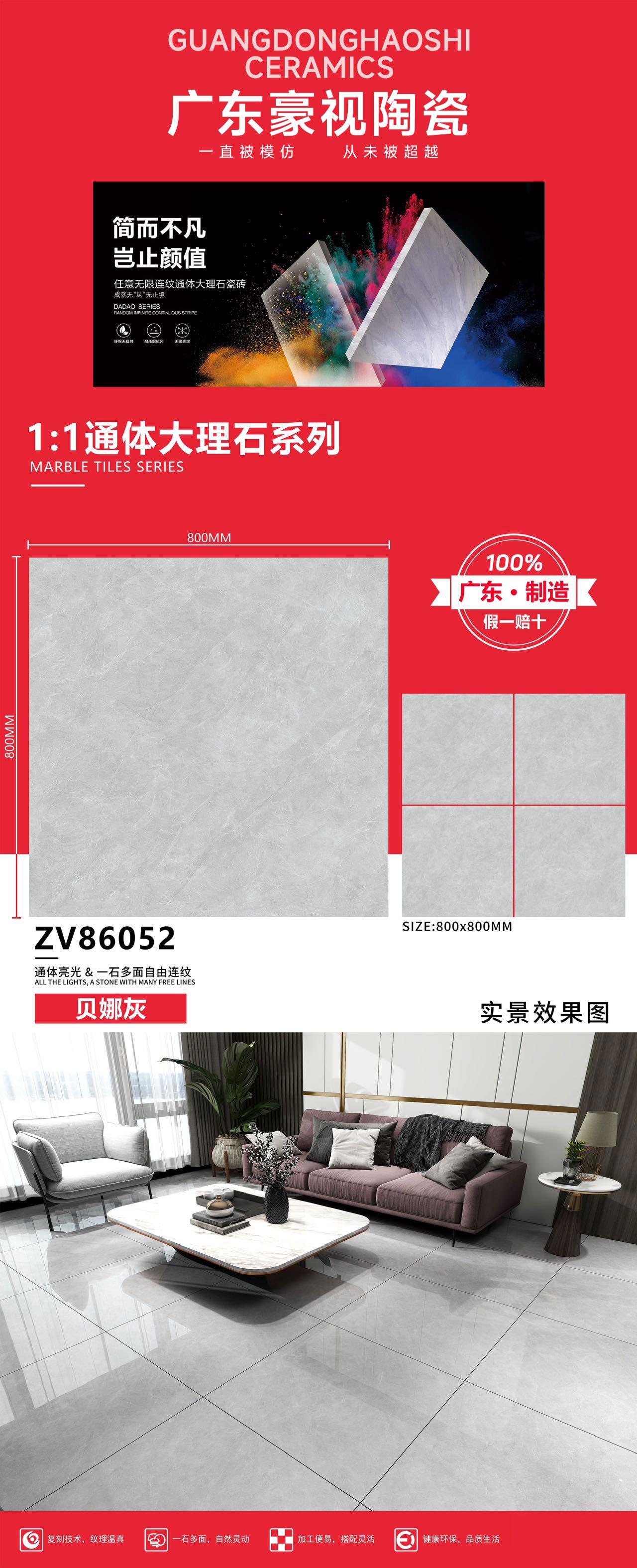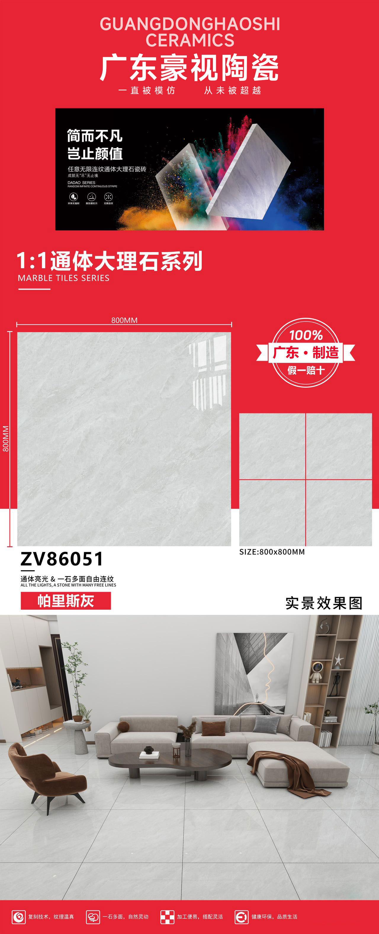 Guangdong Foshan fábrica de dois lados pele esmalte full-body telhas de mármore 800x 800 sala de estar quarto telhas