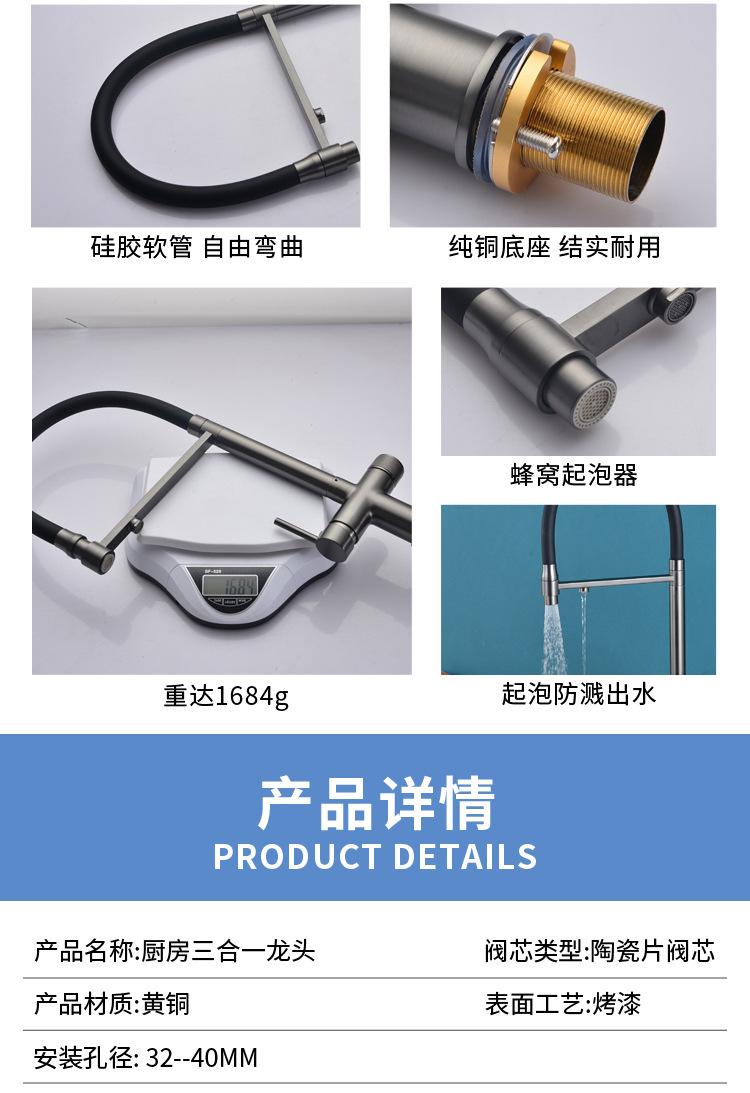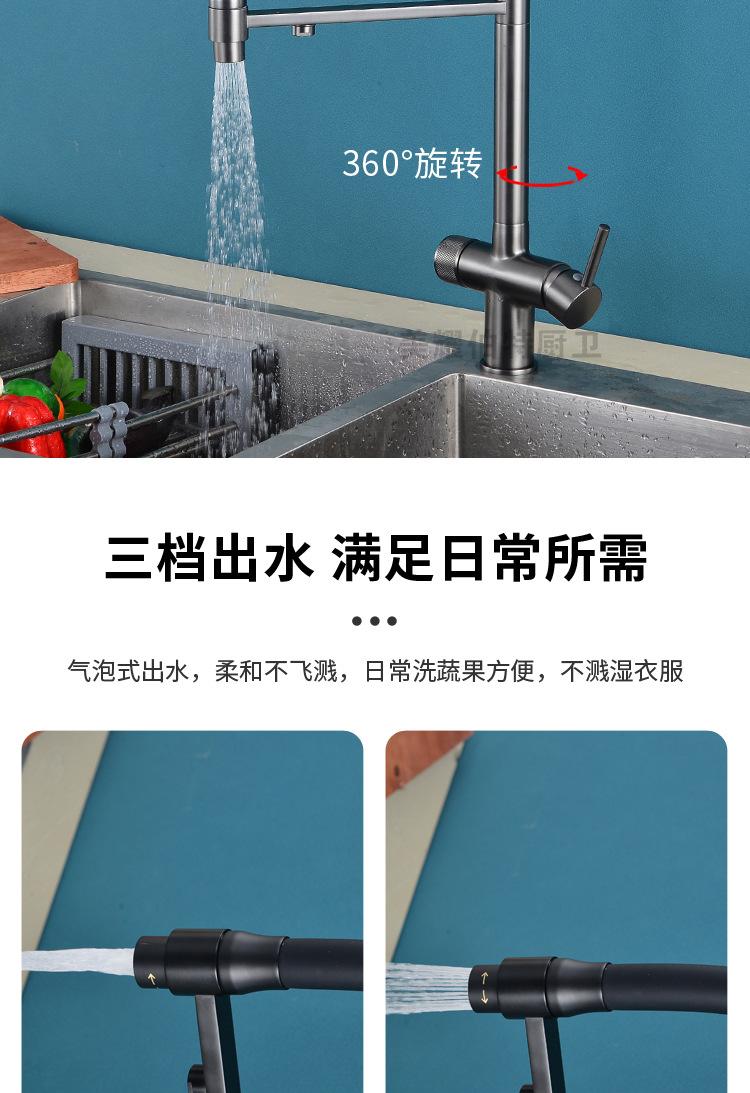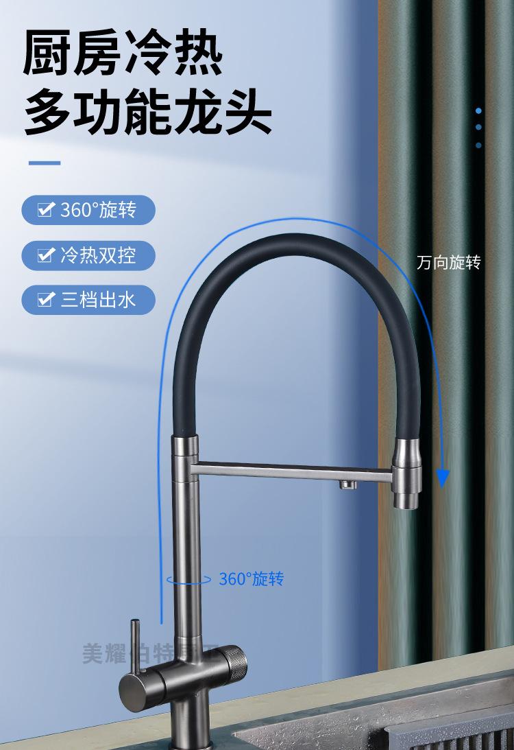 Torneira de cozinha três em um transfronteiriça, torneira universal giratória direta para água potável, torneira para pia de vegetais e água quente e fria