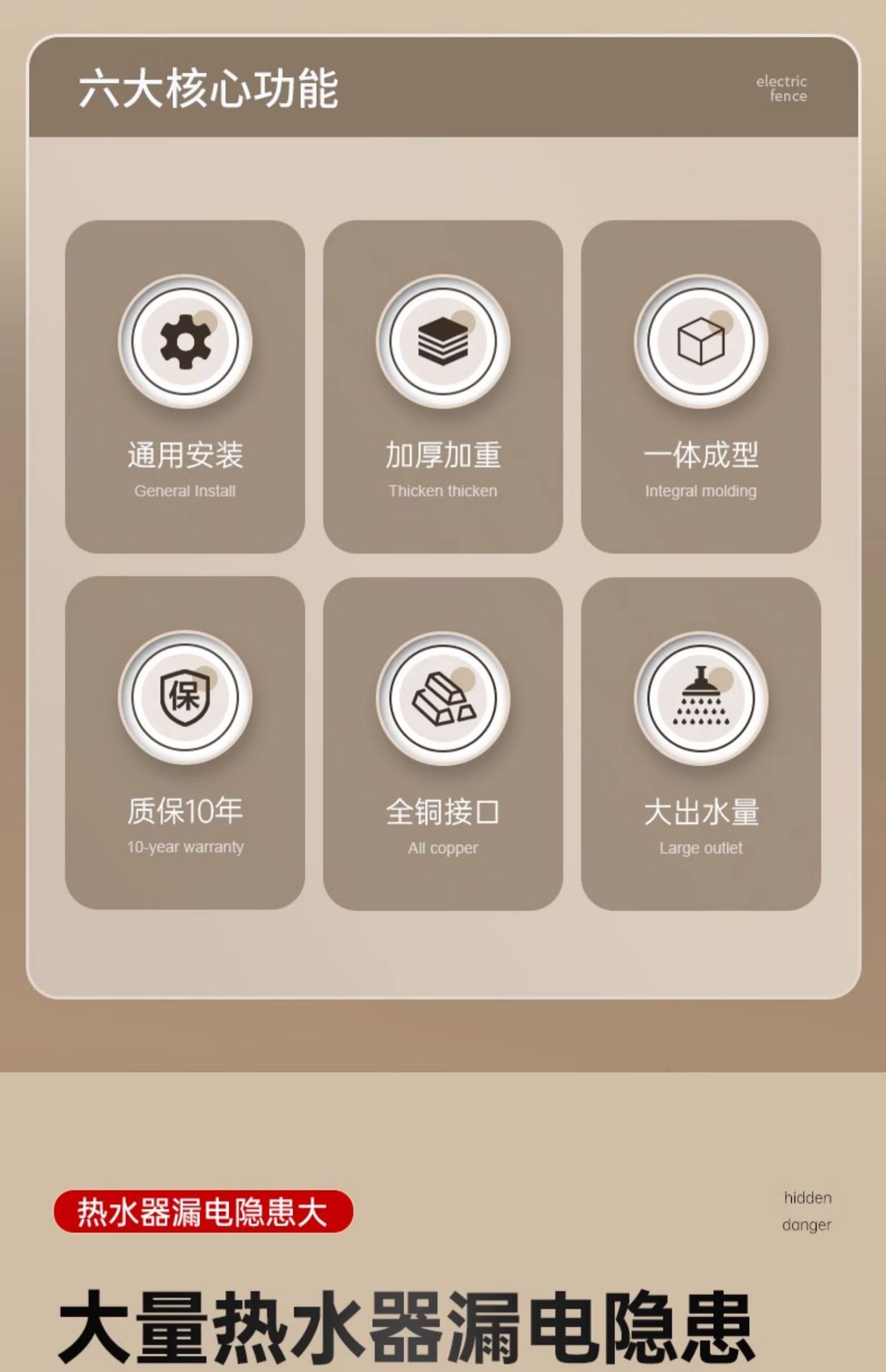 (suit 3) Anti-electric wall * 2 All-copper mixing valve All-copper safety valve Pressurized shower