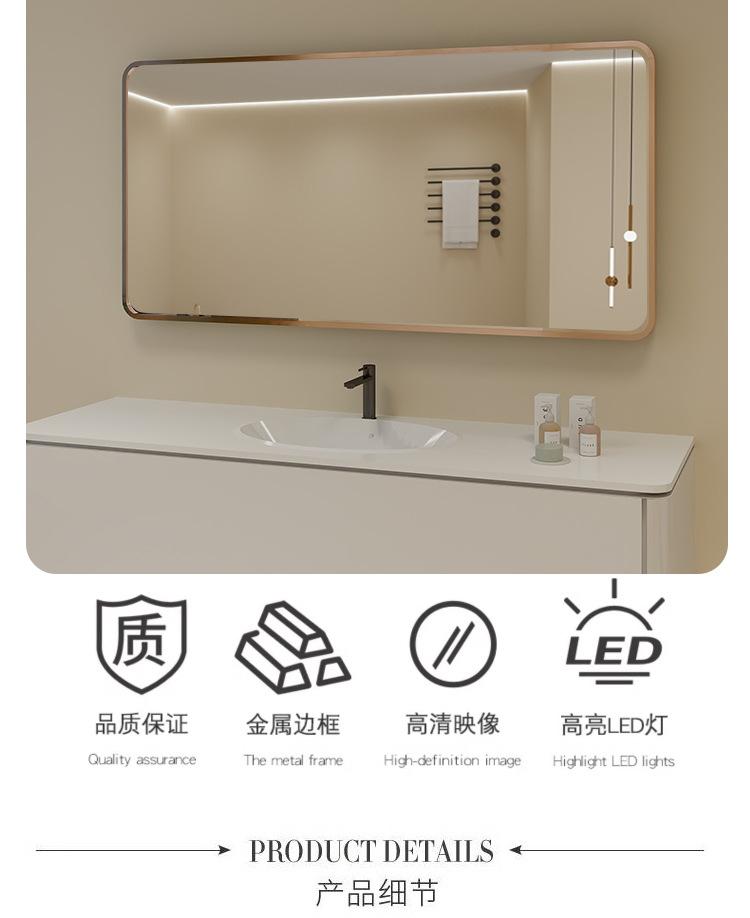 Espelho de Banheiro Redondo Nórdico Espelho de Banheiro Antiembaçante Montado na Parede Espelho Inteligente Sensor de Toque Luz LED Espelho de Maquiagem