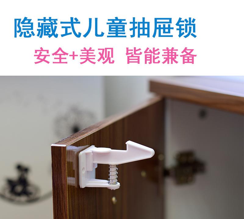 Invisível e mais seguro, ele fornece proteção invisível para bebês. Ele pode ser instalado dentro de gavetas ou portas de armários para efetivamente evitar que os bebês vasculhem e causem perigo. O design exclusivo do produto permite que a gaveta seja trancada para maior segurança.