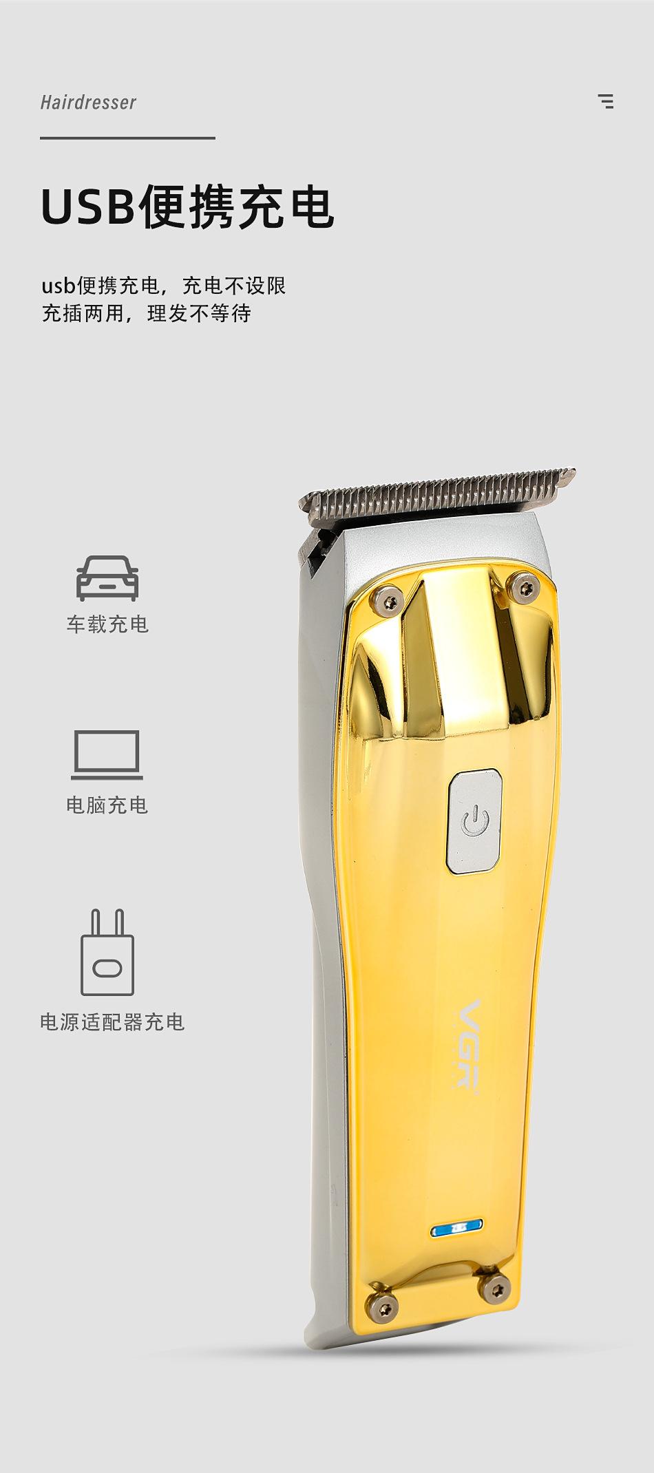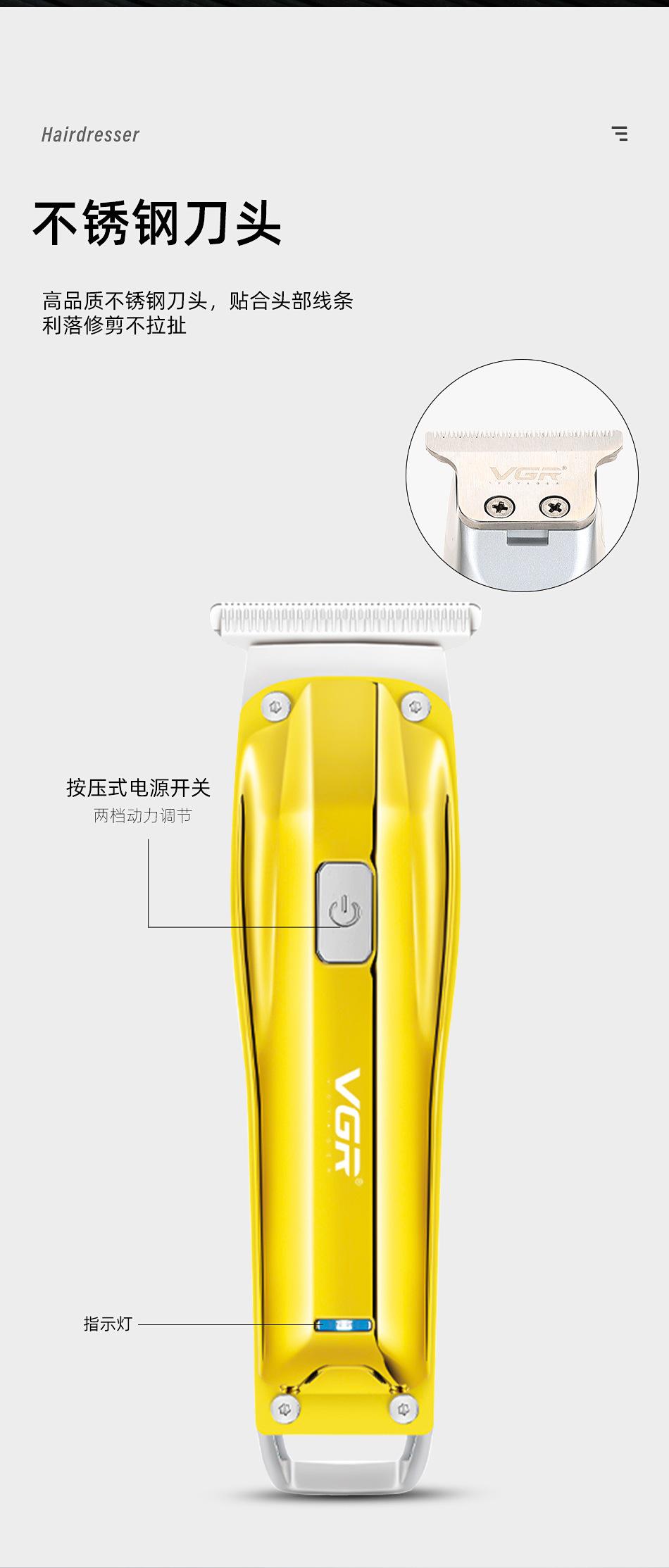 Versão chinesa VGR doméstico elétrico digital cortador de cabelo carregando cabeça de óleo de ajuste de duas velocidades salão de cabeleireiro esculpindo cortadores de homens