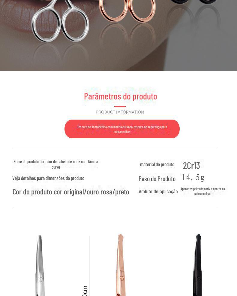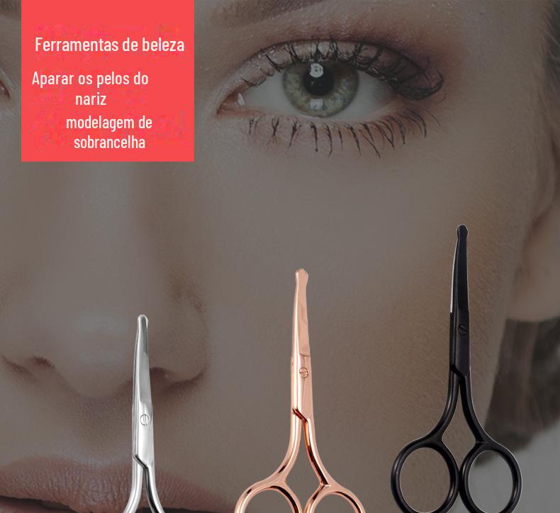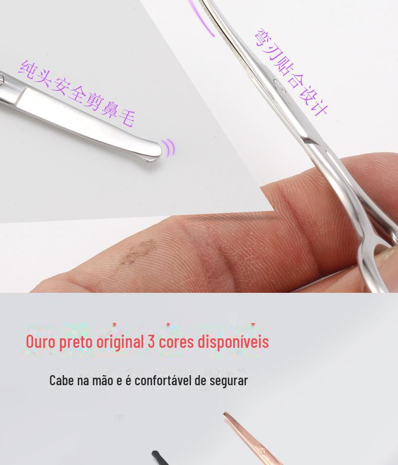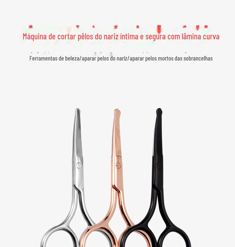 Tesoura de Aço Inoxidável Curva para Pelos do Nariz, Tesoura de Beleza para Aparar Pelos do Nariz e Sobrancelhas, Tesoura de Segurança Manual com Ponta Arredondada, Portátil