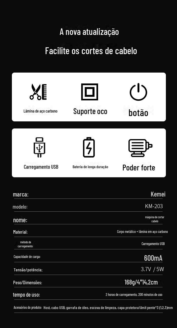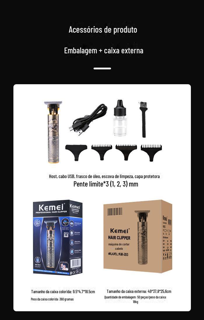 Comey esculpido cortador elétrico KM-203 vintage pirata cross-border cortador elétrico cortador cabeça lavável portátil cabeleireiro cortador de cabelo