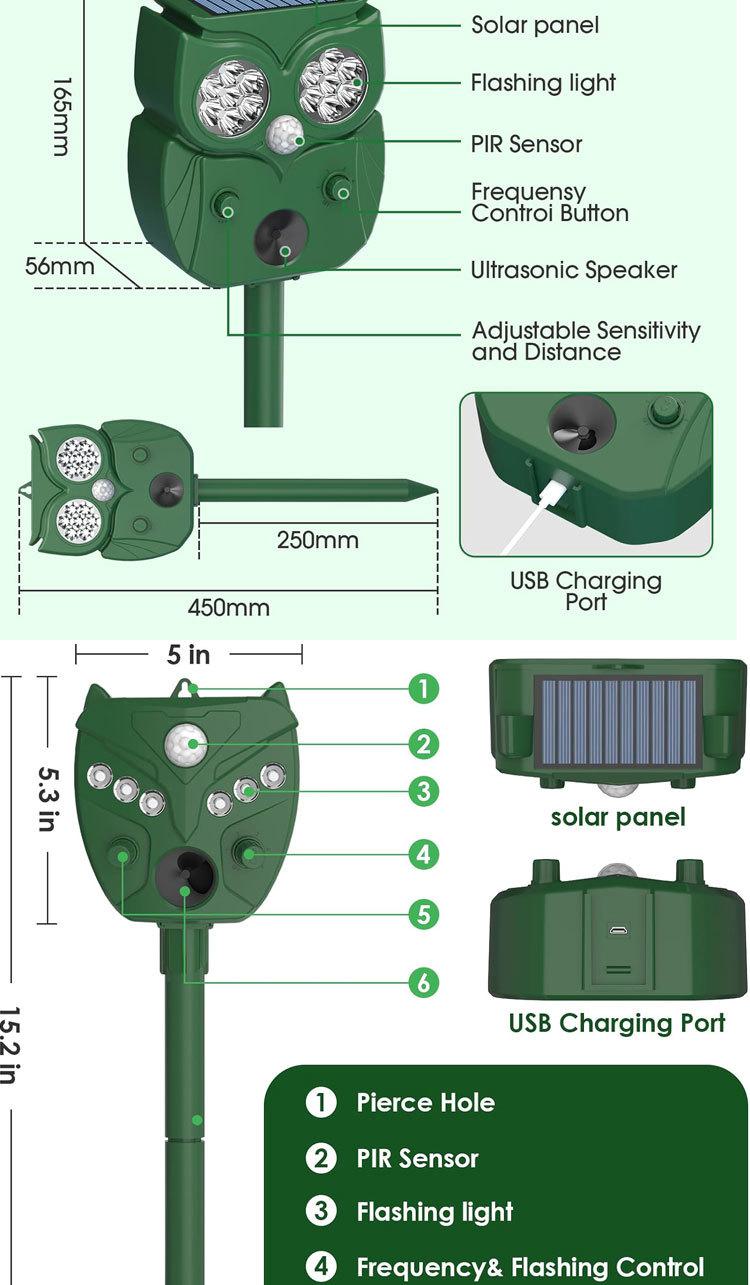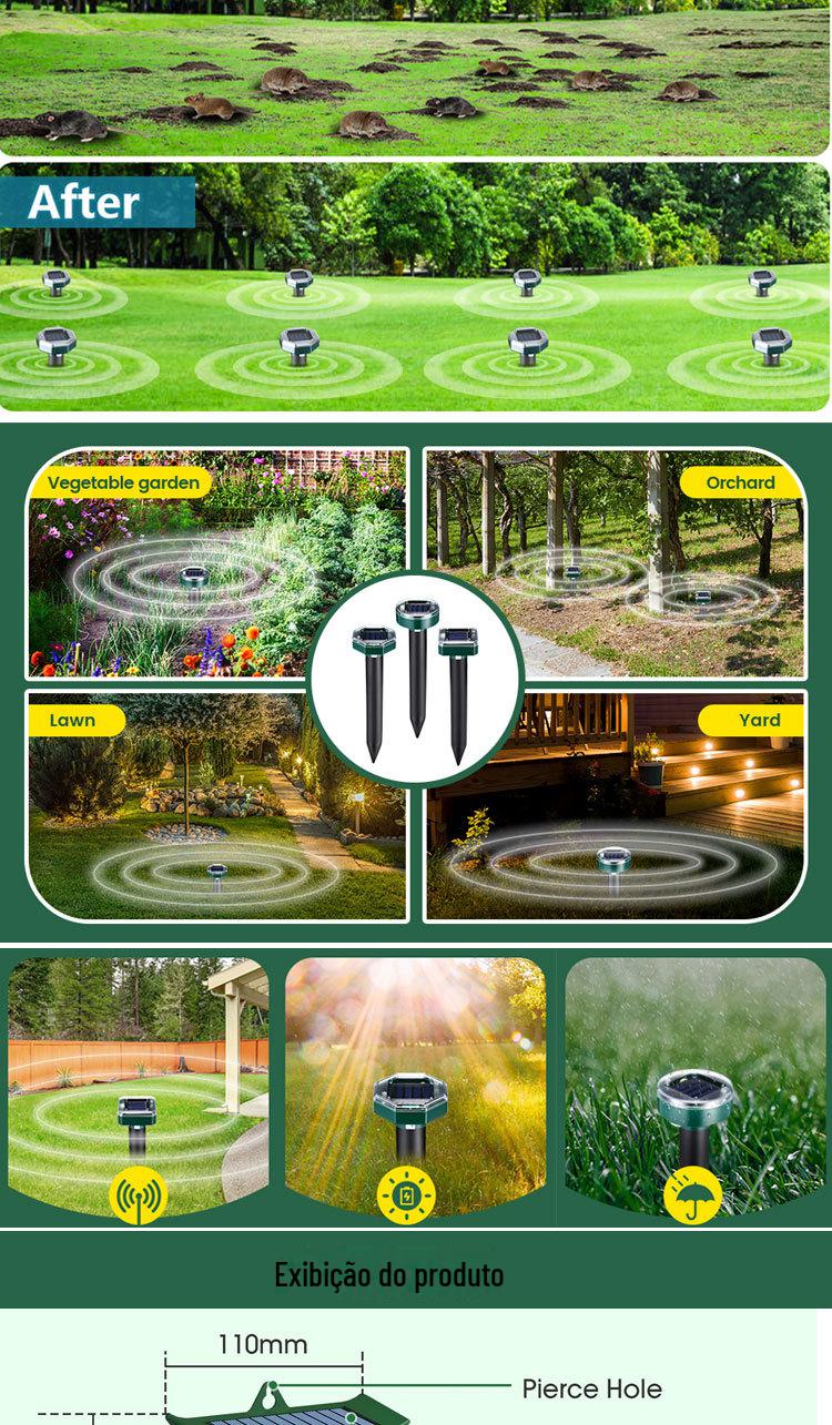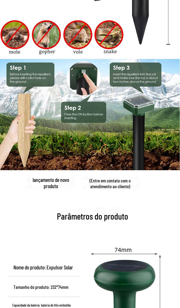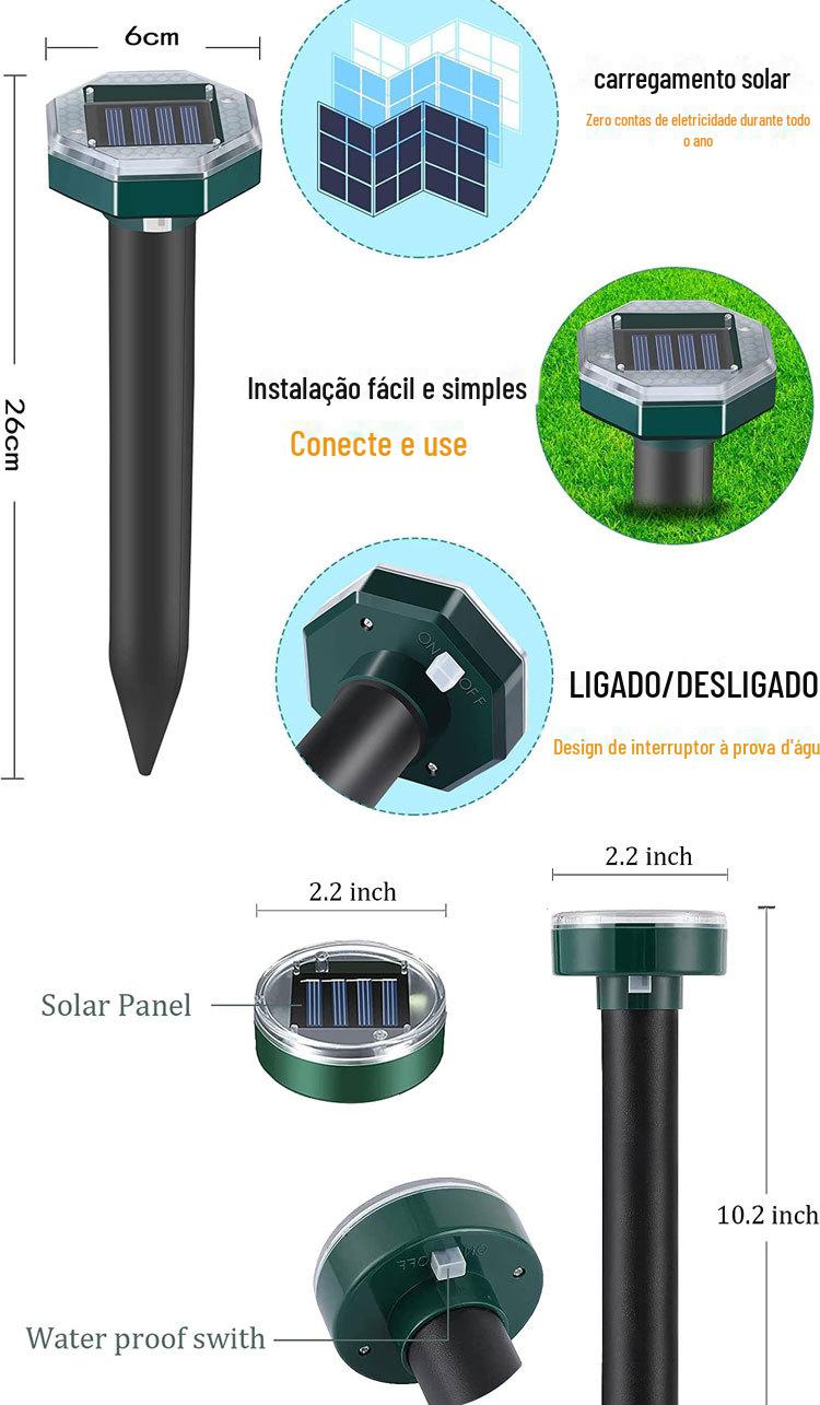 Repelente de Ratos movido a Energia Solar, Repelente de Cobras, Repelente de Pássaros, Repelente de Cães de Pátio, Repelente de Gatos, Repelente Eletrônico de Animais, Repelente de Mosquitos