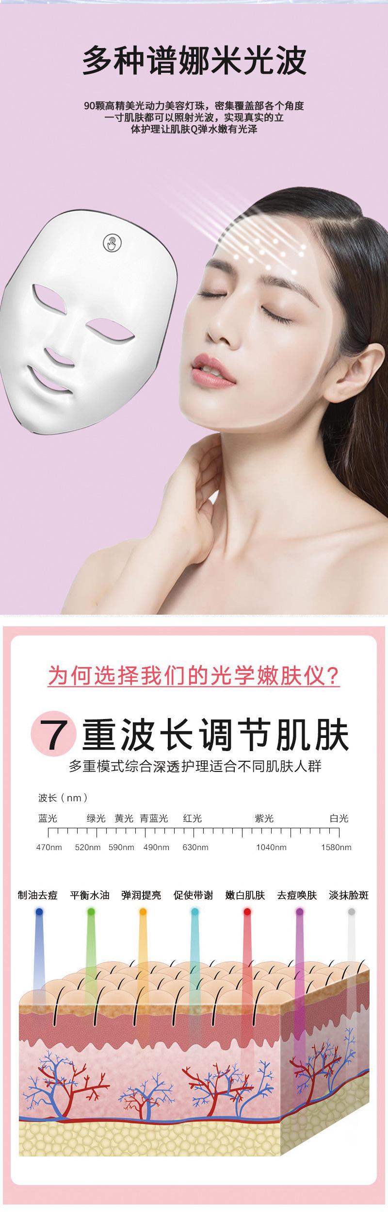 Fóton rejuvenescimento da pele instrumento vermelho azul máscara beleza instrumento de rejuvenescimento facial doméstico grande fileira luz acne removendo espectrômetro de manchas de luz