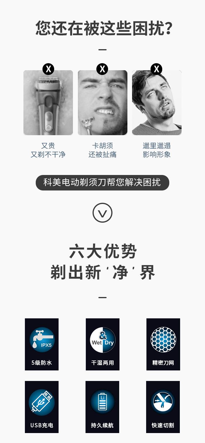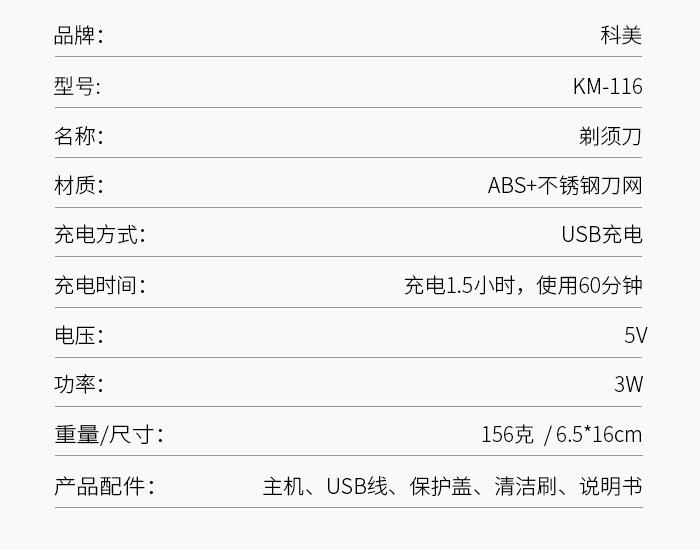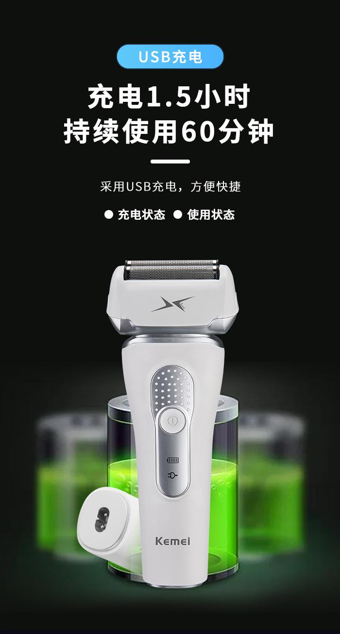 Kemei KM-116 rede de faca dupla flutuante recíproca não emperra todo o corpo lavando USB Razor barbeador elétrico