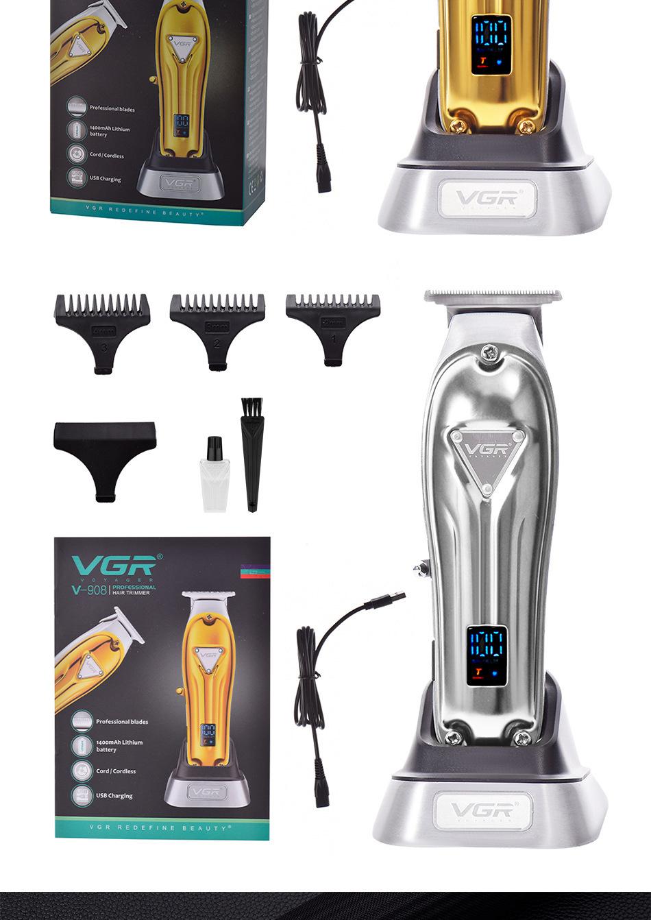 VGR908 cross-border all-metal cabeça de óleo retro Clippers profissional salão de cabeleireiro base cortador de cabelo LCD display digital cortadores elétricos