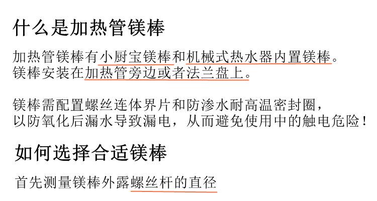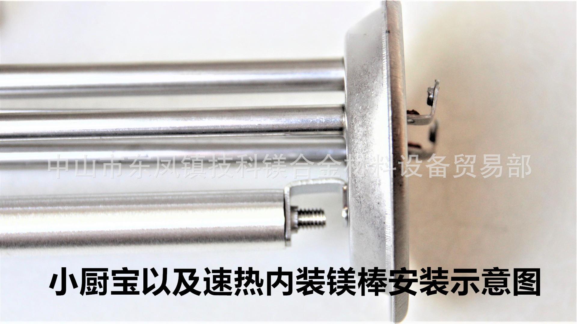 Inibe efetivamente a condensação de incrustações na parede interna do tanque de água, no tubo de aquecimento e na parede interna do tubo de saída de água. Se a incrustação se acumular por muito tempo, ela corroerá o tanque interno e perfurará; a condensação de incrustações no tubo de aquecimento ficará cada vez mais espessa com o tempo, afetando a velocidade de aquecimento e consumindo eletricidade. A condensação de incrustações no tubo de saída de água também causará entupimento. A haste de magnésio oxida e decompõe moléculas de magnésio para diluir a condensação de incrustações, mas se depositará no interior, por isso é necessário drenar e limpar regularmente a haste de magnésio a cada um ou dois anos!