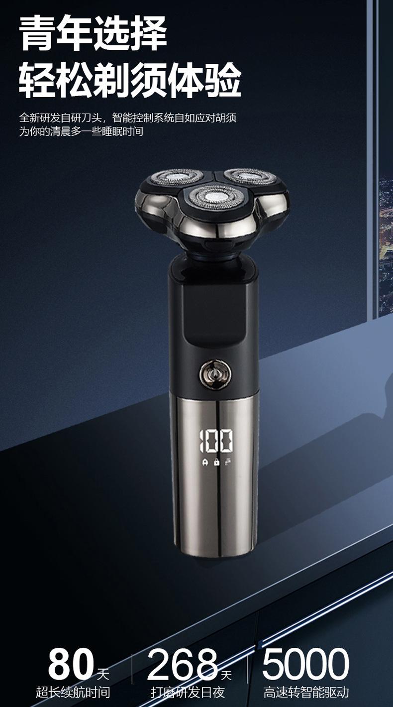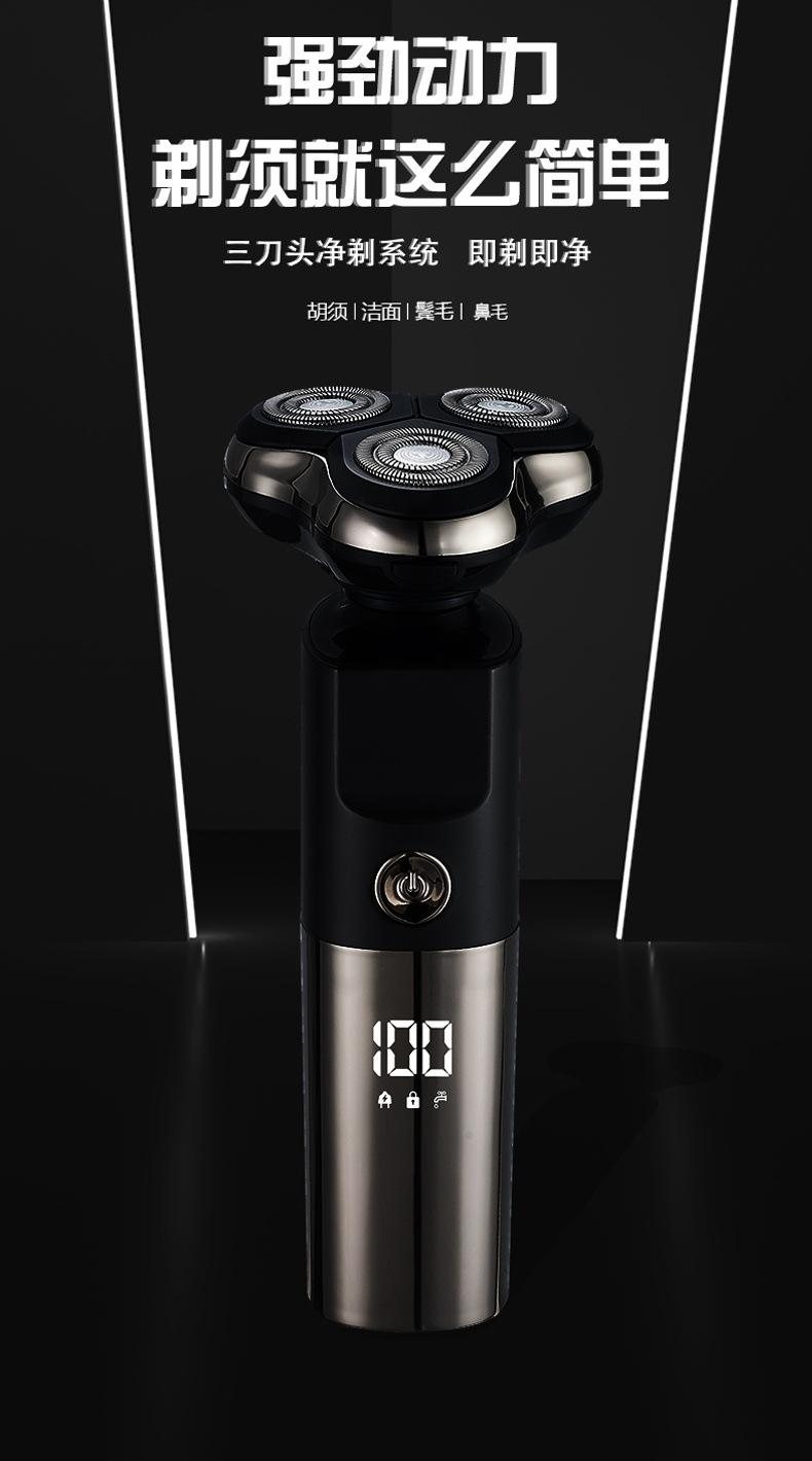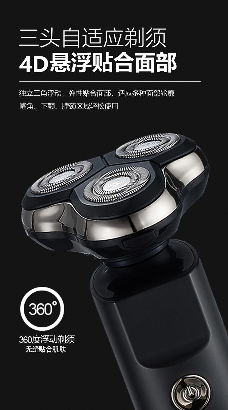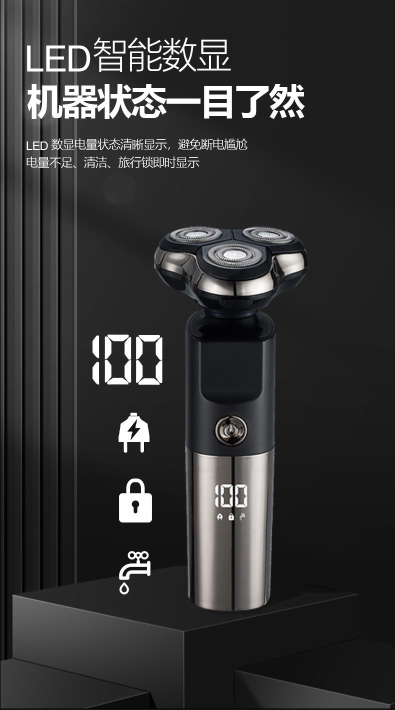 Barbeador elétrico transfronteiriço multifuncional inteligente flutuante à prova d'água lavagem de três cabeças navalha recarregável faca de barba masculina