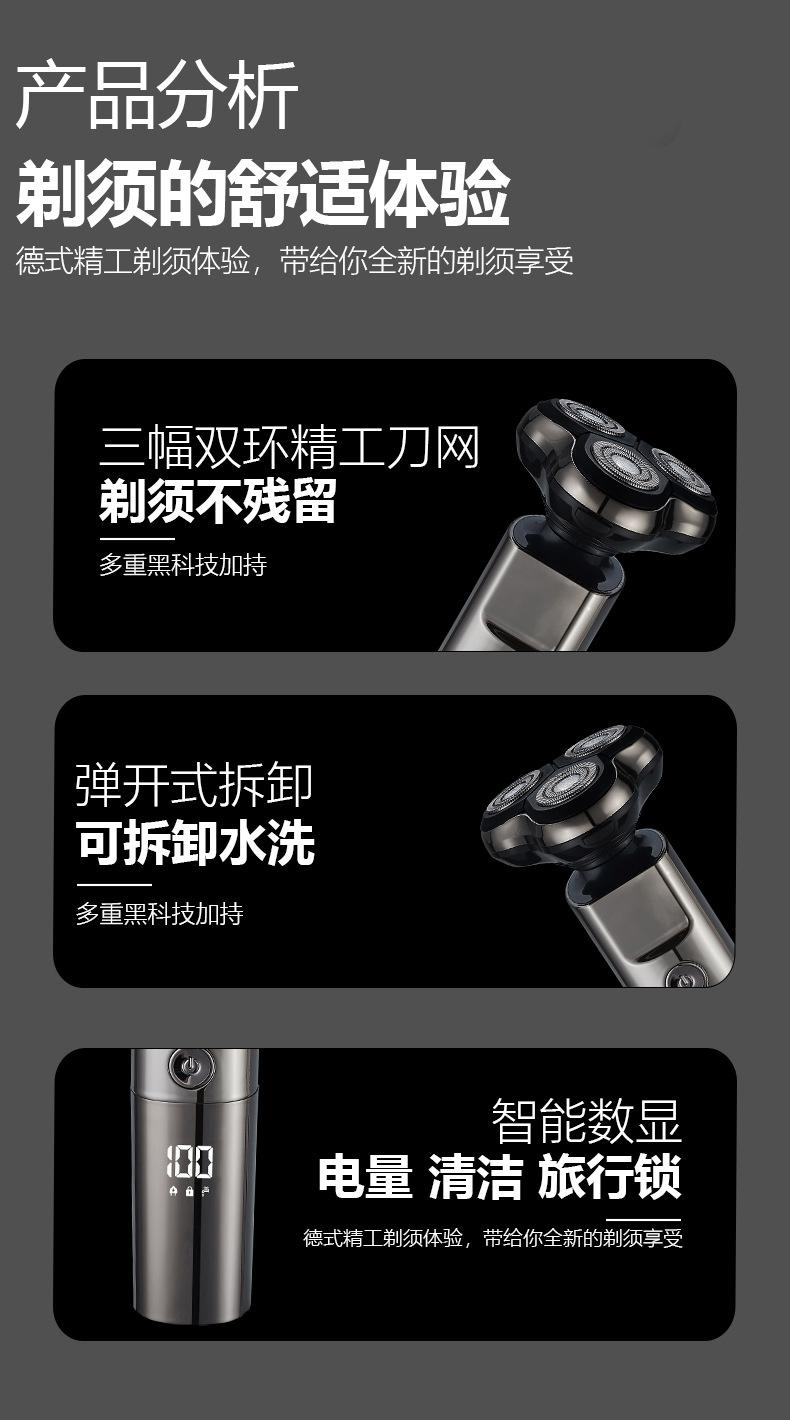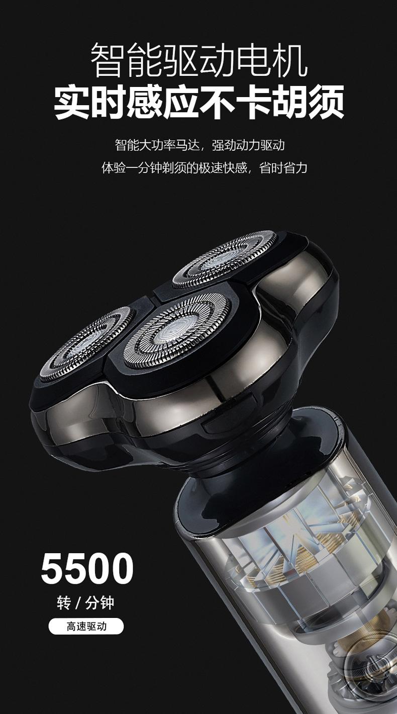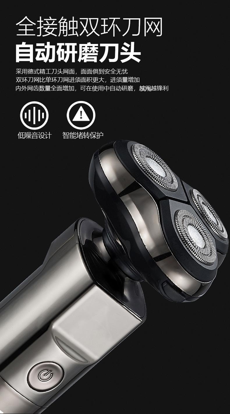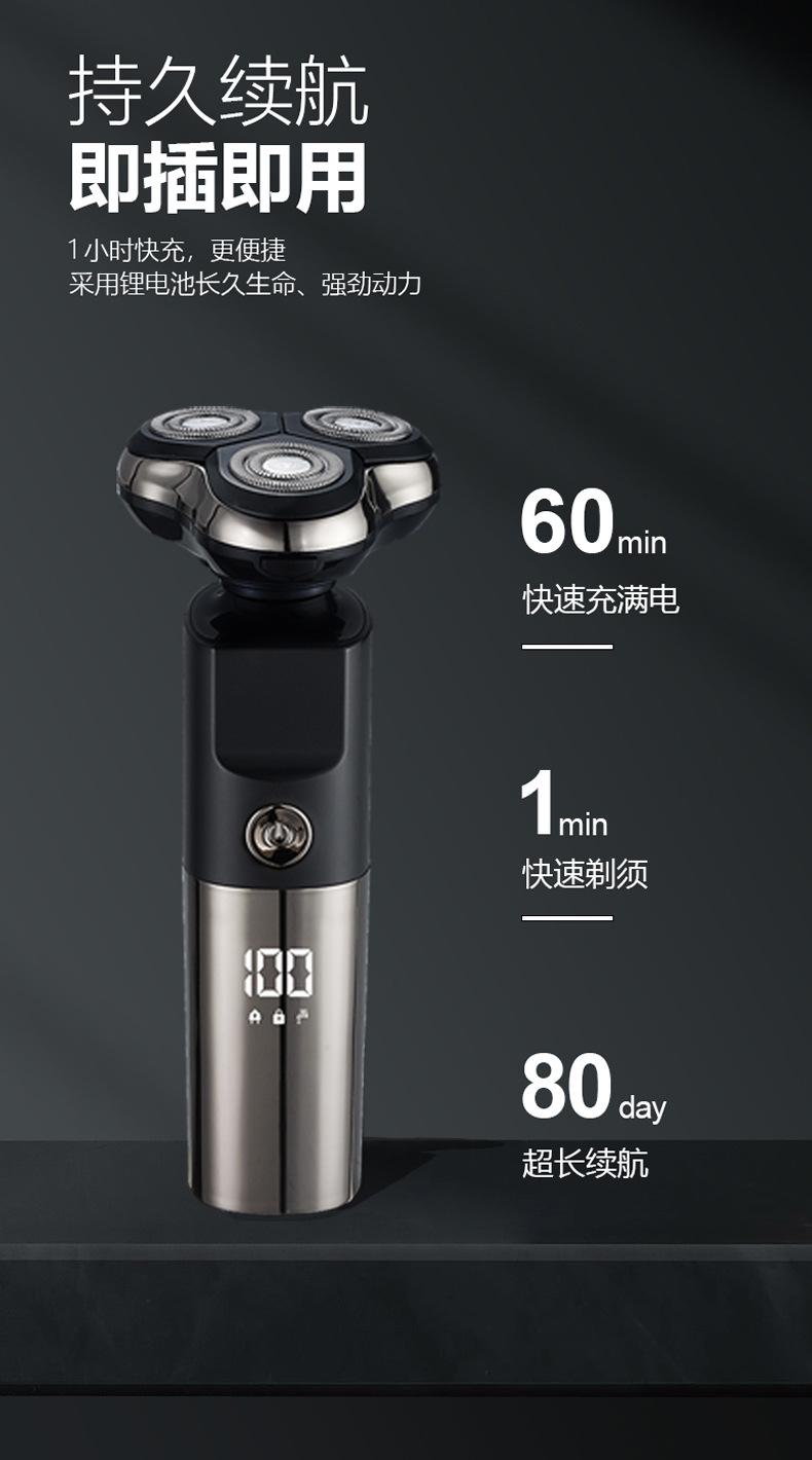 Barbeador elétrico transfronteiriço multifuncional inteligente flutuante à prova d'água lavagem de três cabeças navalha recarregável faca de barba masculina