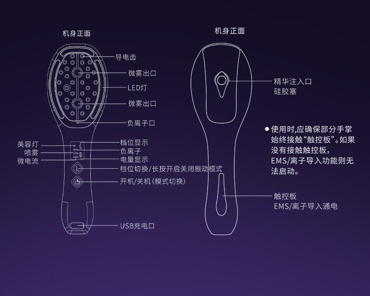 Compre Instrumento de cuidados com o cabelo aplicador de medicina do couro cabeludo atomização líquido elétrico massagem pente cabelo vermelho EMS micro-corrente vibração de íons no atacado no Joom.pro