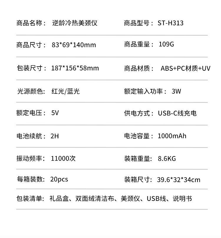 Instrumento de Introdução Quente e Frio de Novo Produto Transfronteiriço Instrumento para Rugas no Pescoço Instrumento de Beleza Doméstico com Luz Colorida para Remover Linhas do Pescoço, Levantar e Firmar Instrumento de Beleza para o Pescoço