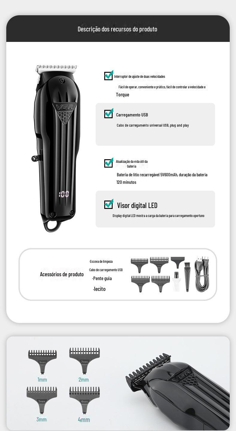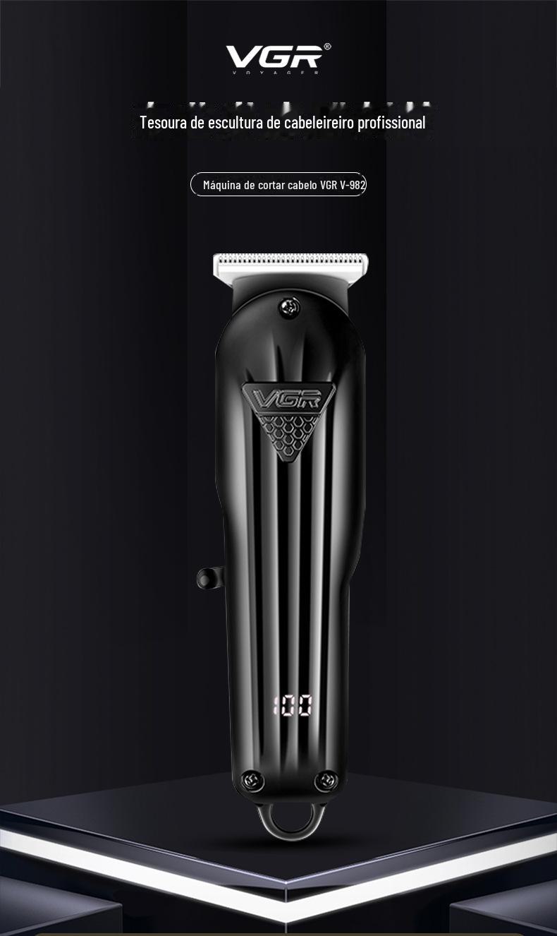 VGR982 Máquina de cortar cabelo elétrica profissional com tela digital, nova, transfronteiriça, para salão de beleza, máquina de cortar cabelo doméstica masculina, máquina de cortar cabelo elétrica com gravação