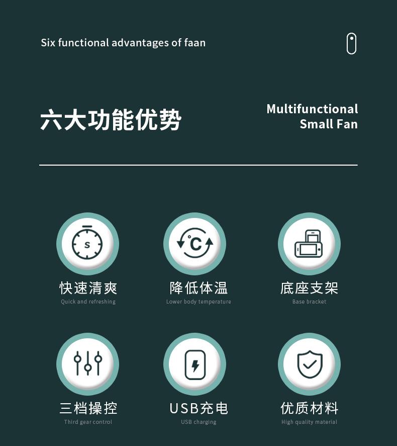 Verão de resfriamento portátil usb carregamento pequeno ventilador destacável suporte base três controle de velocidade ventilador presente transfronteiriço