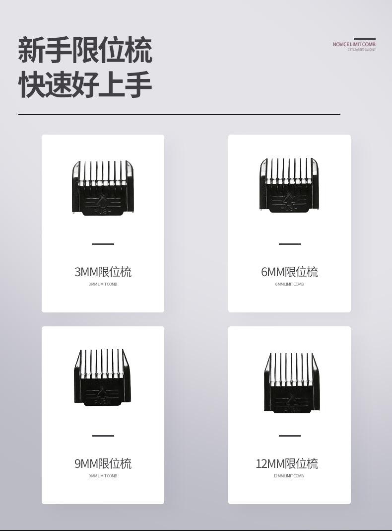Acessórios do produto: caixa de embalagem, manual de instruções, quatro pentes de limite, cabo USB, frasco de lubrificante (deixe mensagem se não quiser exportar), escova de limpeza