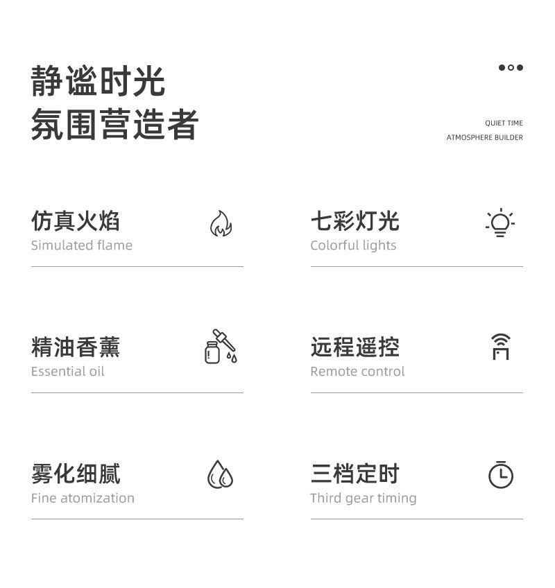 Efeito de iluminação: Colorido/chama Interruptor de spray: Névoa padrão sem temporizador