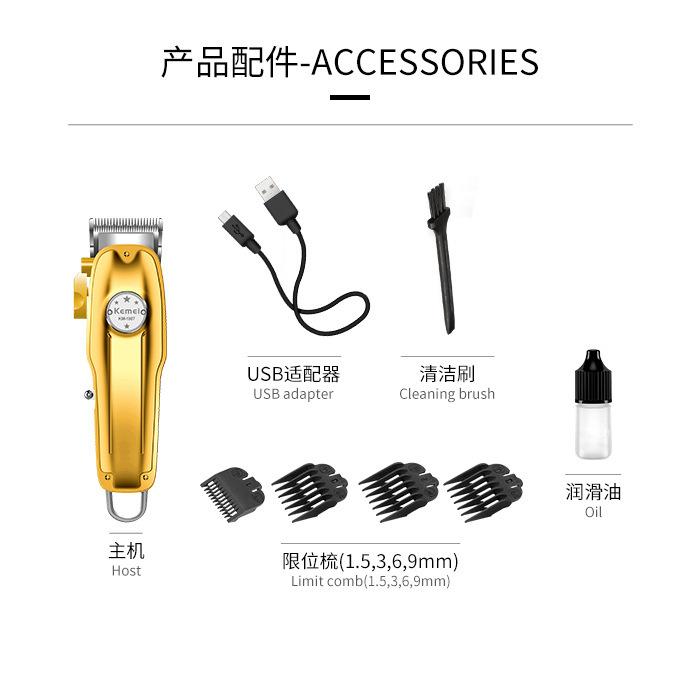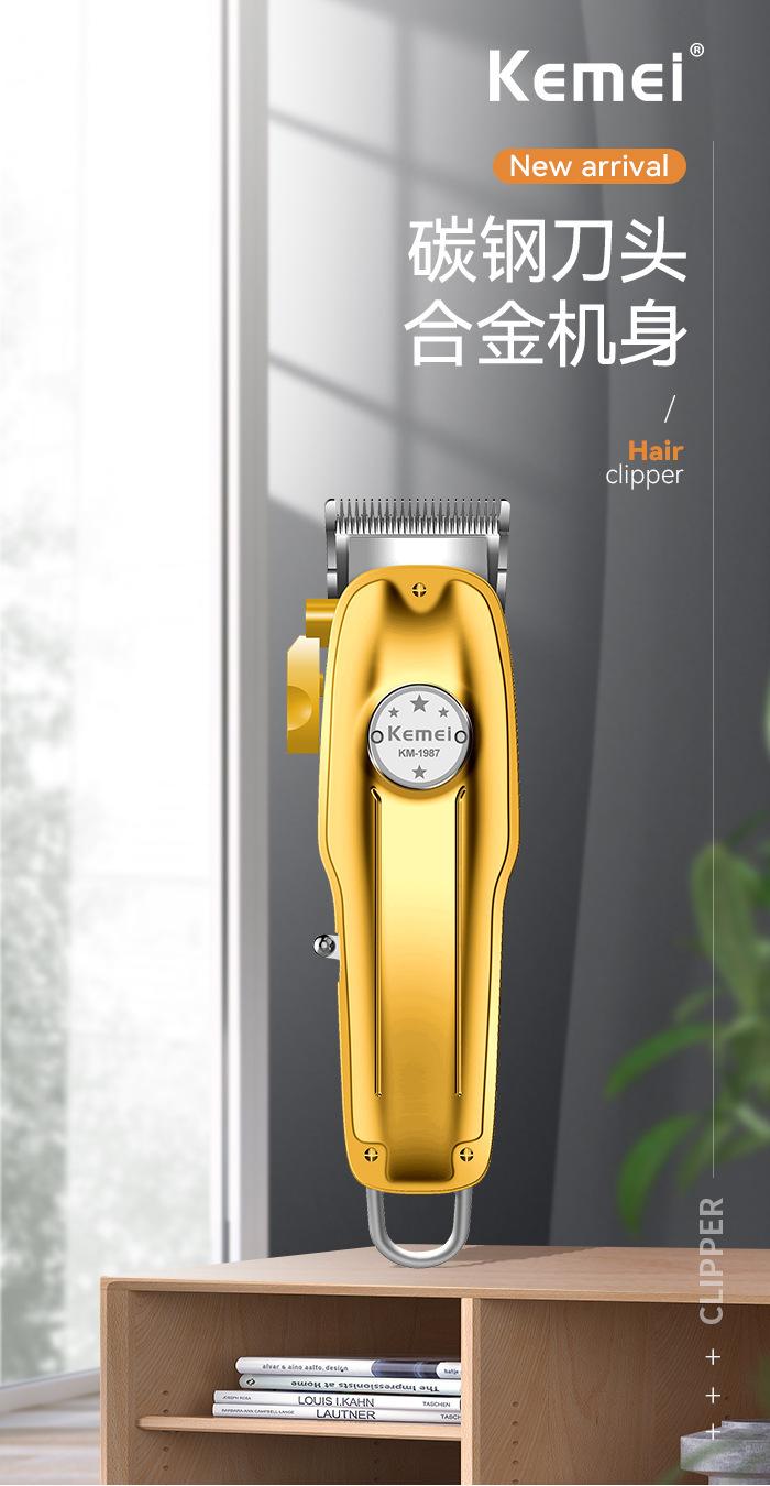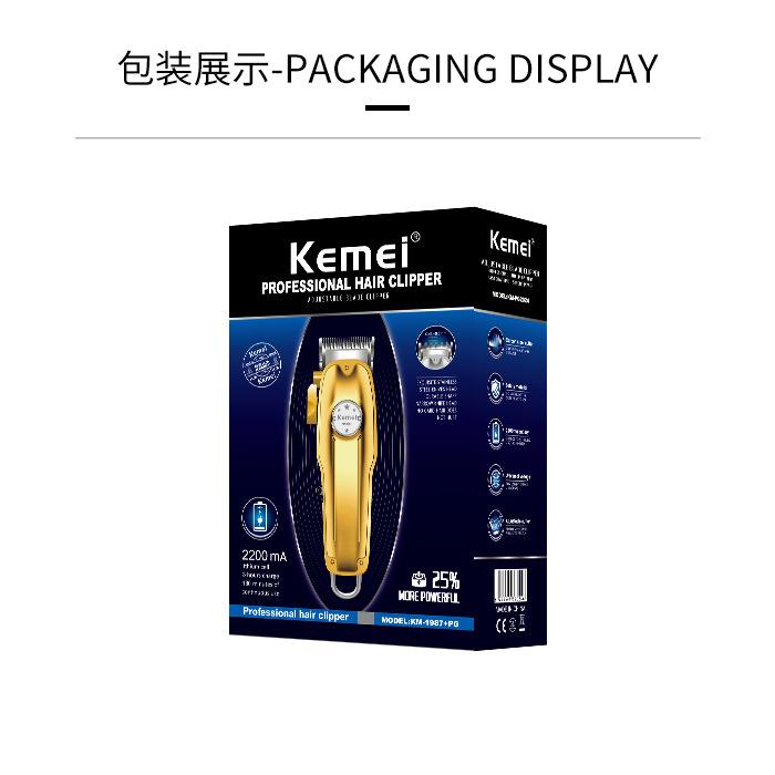 Kemei/Kemei Máquina de Cortar Cabelo Km-1987+Pg Corpo Totalmente Metálico Carregamento USB Cabeça Ajustável Máquina de Cortar Elétrica