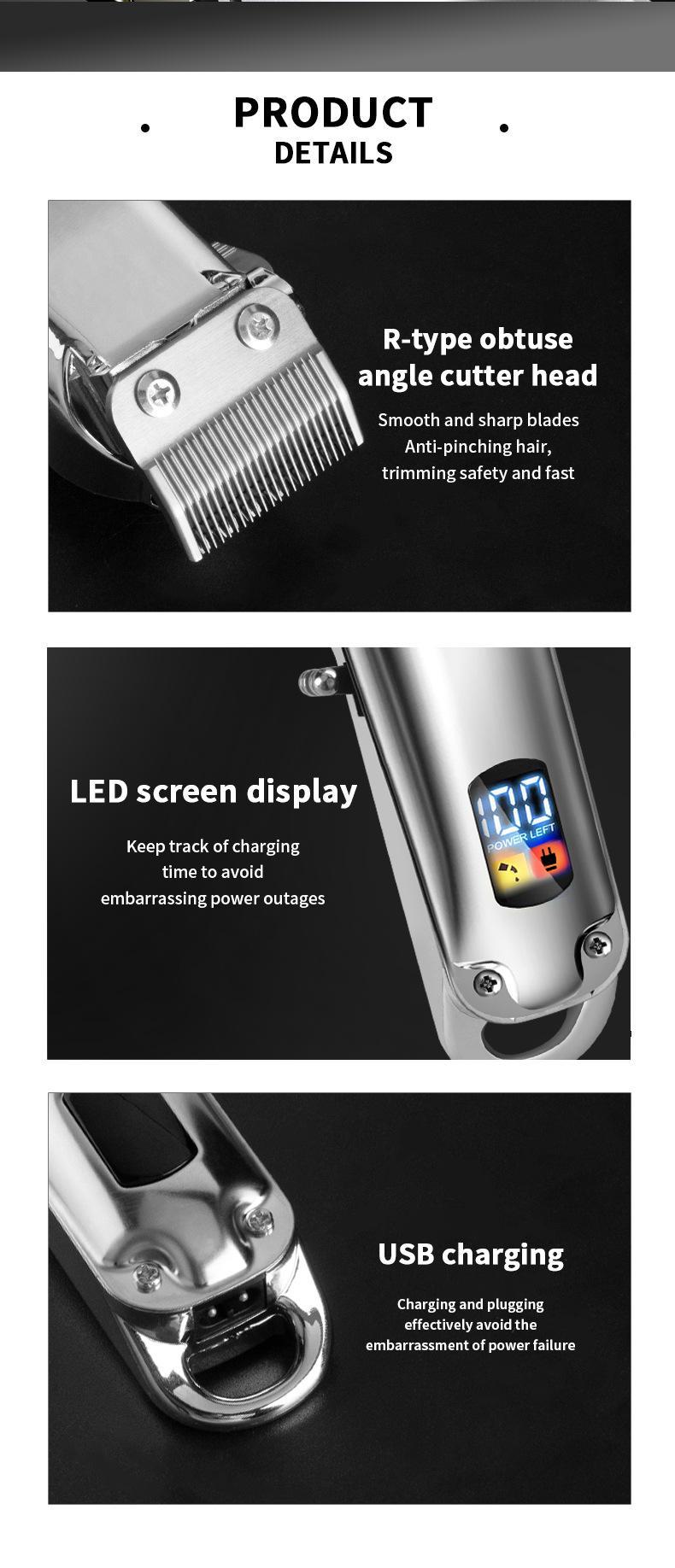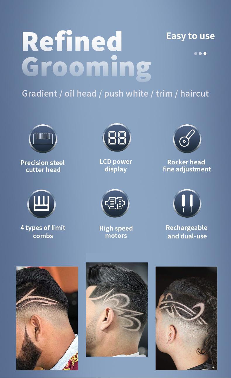 Cortador de cabelo elétrico transfronteiriço Display digital LCD cortadores elétricos barbeadores profissionais salão de cabeleireiro dedicado metal cortadores elétricos