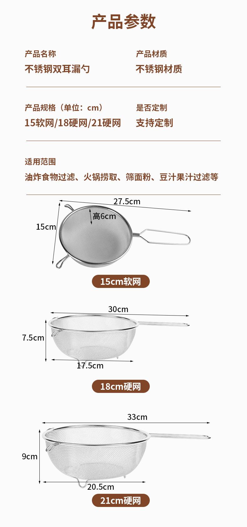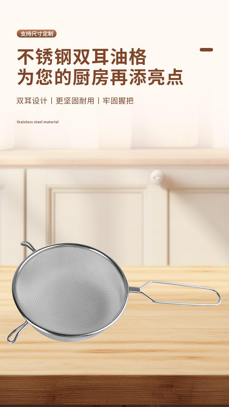 Fornecimento Direto da Fábrica Utensílios de Cozinha Aço Inoxidável Grelhas de Óleo de Orelha Dupla Rede de Pesca Filtro de Cozinha Lavagem de Água Legumes Farinha Peneira Escorredor Atacado