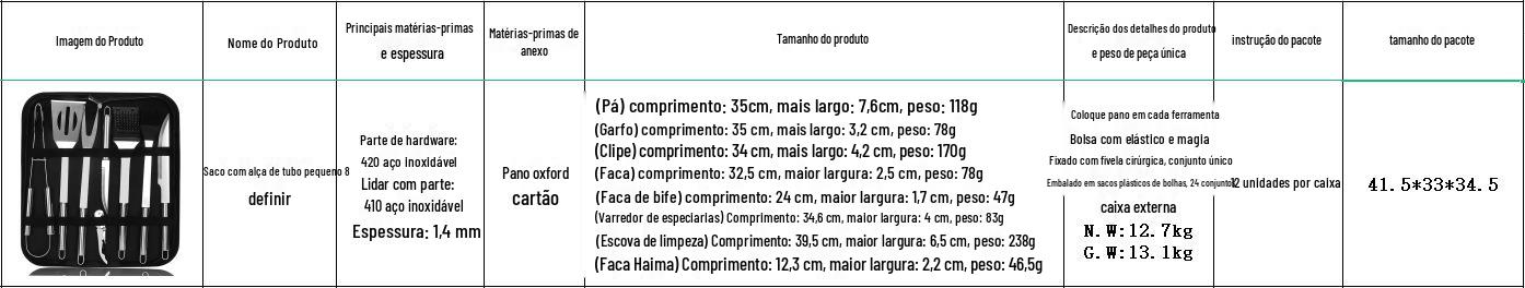 Fabricante Zhongyu Conjunto de Churrasqueira Amazon 8 Peças Bolsa Oxford Exterior Casa Portátil Bolsa de Tecido Armazenamento de Ferramentas para Churrasco