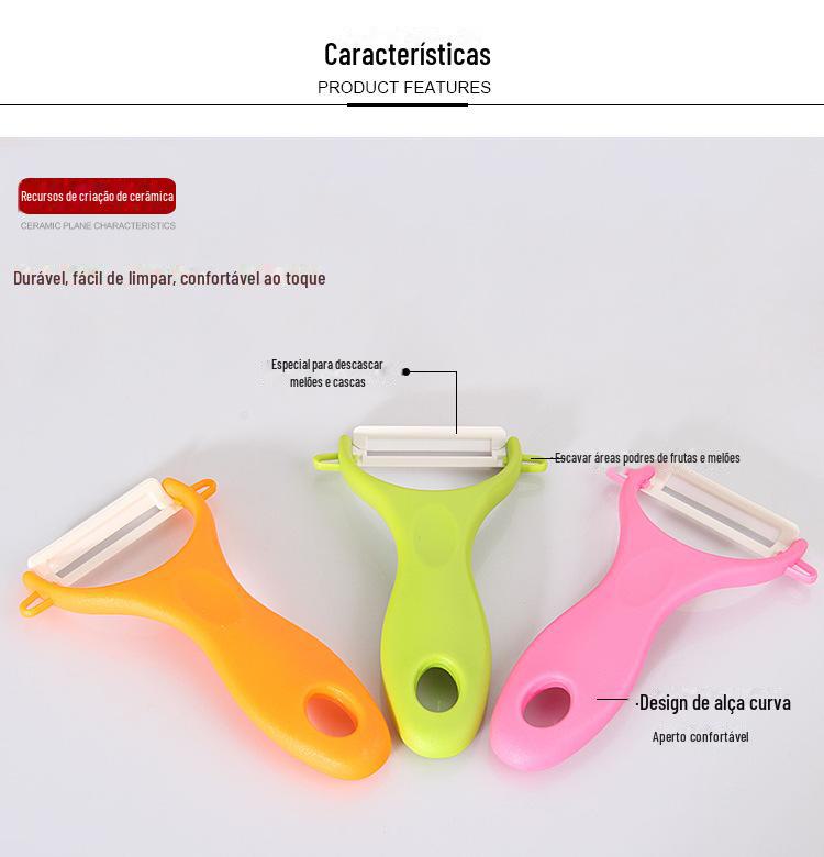 Barraca de rua fornece descascador de cerâmica moda frutas plaina cor lidar com faca descascadora melão plaina presente cozinha gadget