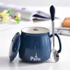 Caneca de cerâmica caneca com tampa e colher xícara de café atividade pequeno presente cerâmica publicidade copo logotipo personalizado abertura presente