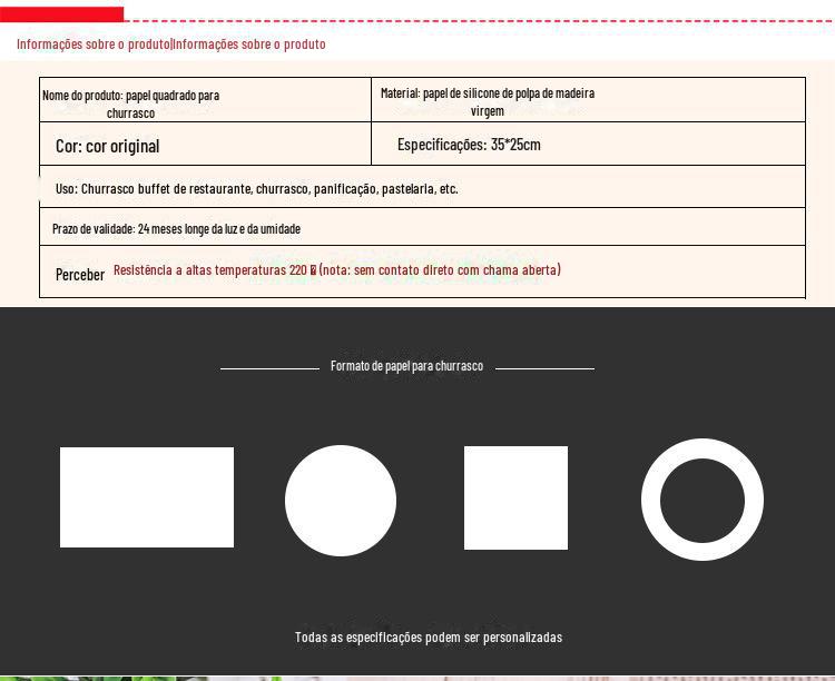 Nome do produto: papel de silicone para cozimento de cor natural, papel antiaderente para churrasco, papel pergaminho, papel manteiga