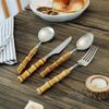 Conjunto de Talheres Ocidentais de Aço Inoxidável 304 Retrô de Luxo Leve com Cabo de Bambu Hotel Faca para Bife, Garfo, Colher e Colher Atacado