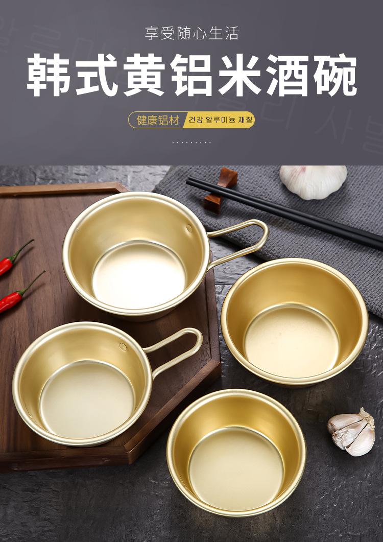Tigela de vinho de arroz coreana Tigela de alumínio dourado Tigela de vinho de arroz com alça Tigela de cozinha Tigela de vinho quente e fria para restaurante Tigela de cozinha