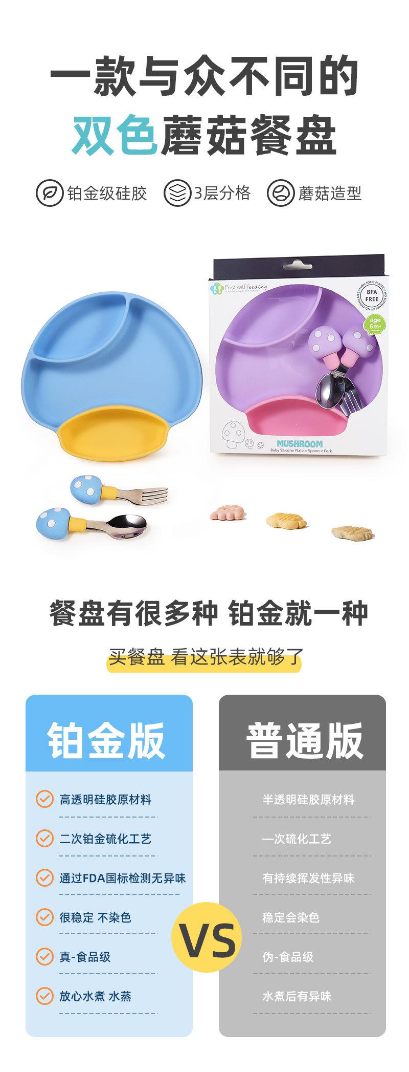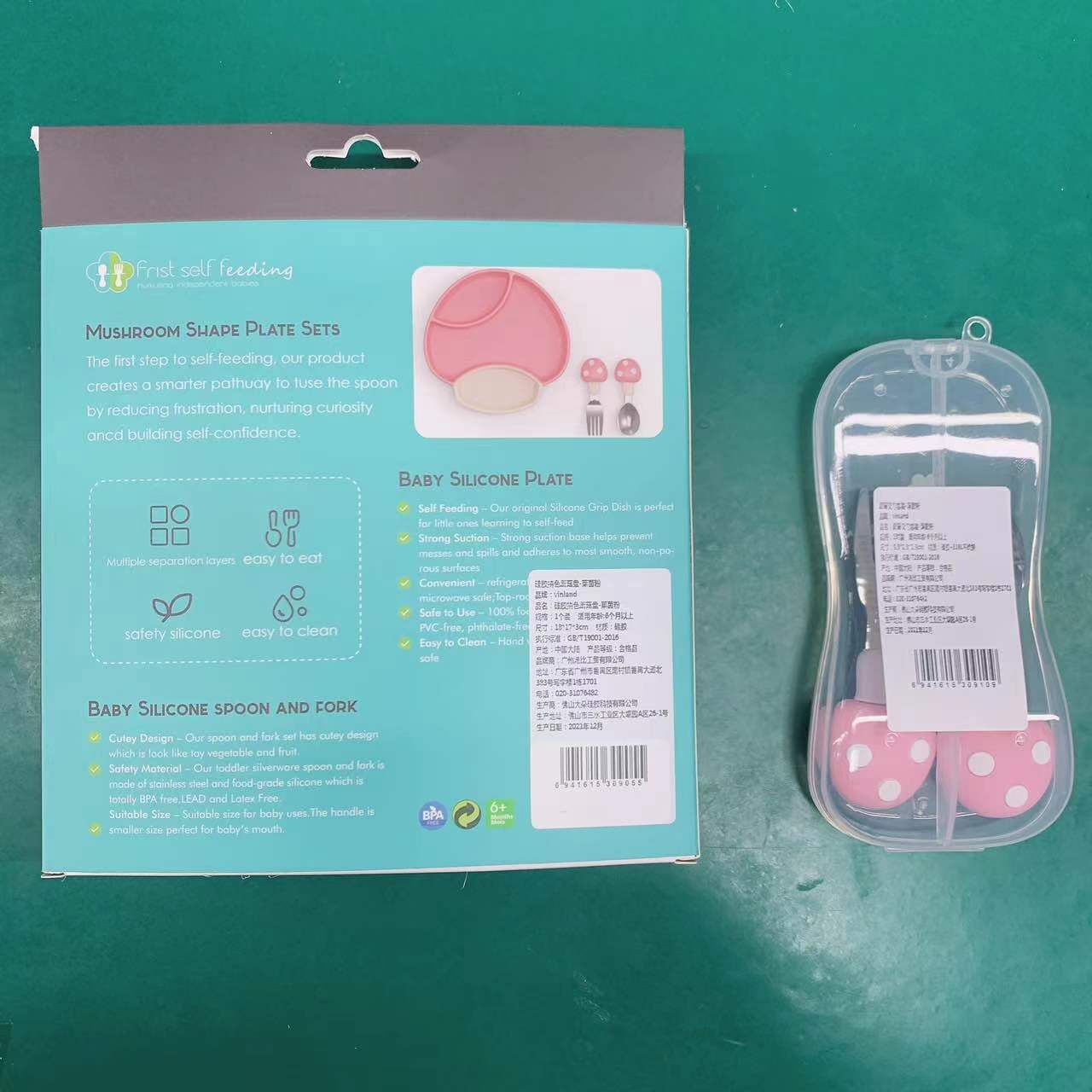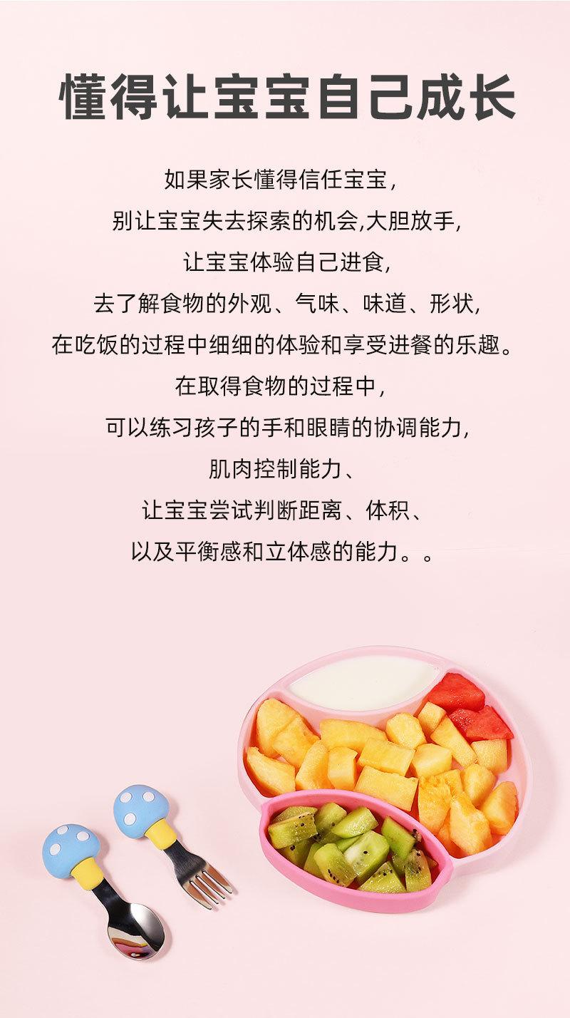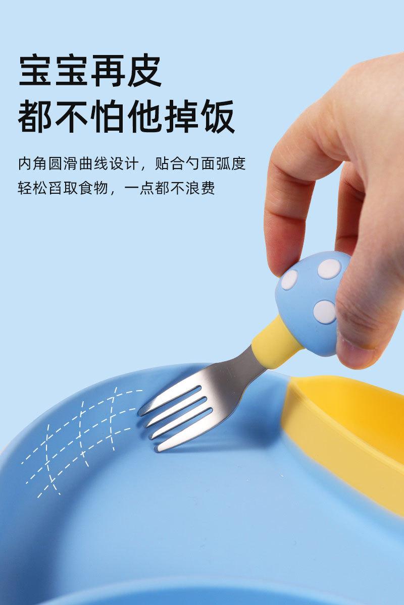 (Novas vendas diretas) Conjunto de colher de garfo de silicone de cogumelo de duas cores para bebê dividido ventosa comida complementar talheres infantis