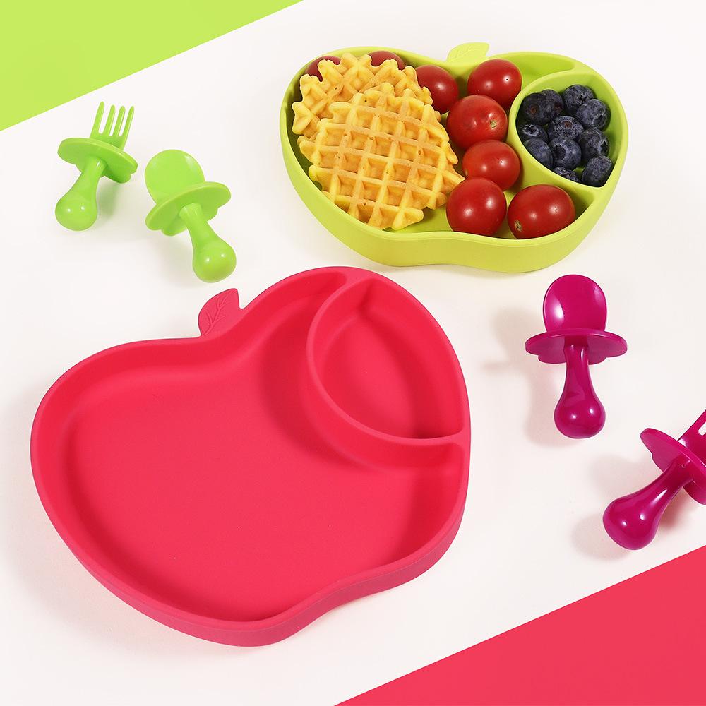 Atacado de Novos ProdutosConjunto de prato, garfo e colher de silicone para bebê