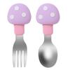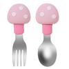 (Novas vendas diretas) Conjunto de colher garfo de bebê de silicone cogumelo multicolorido 316 talheres de alimentação de silicone com cabo curto para crianças