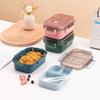 Dupla Lancheira Divisória Selada Bento Box Aquecimento Micro-ondas para Estudantes Caixa de Refeição com Louças