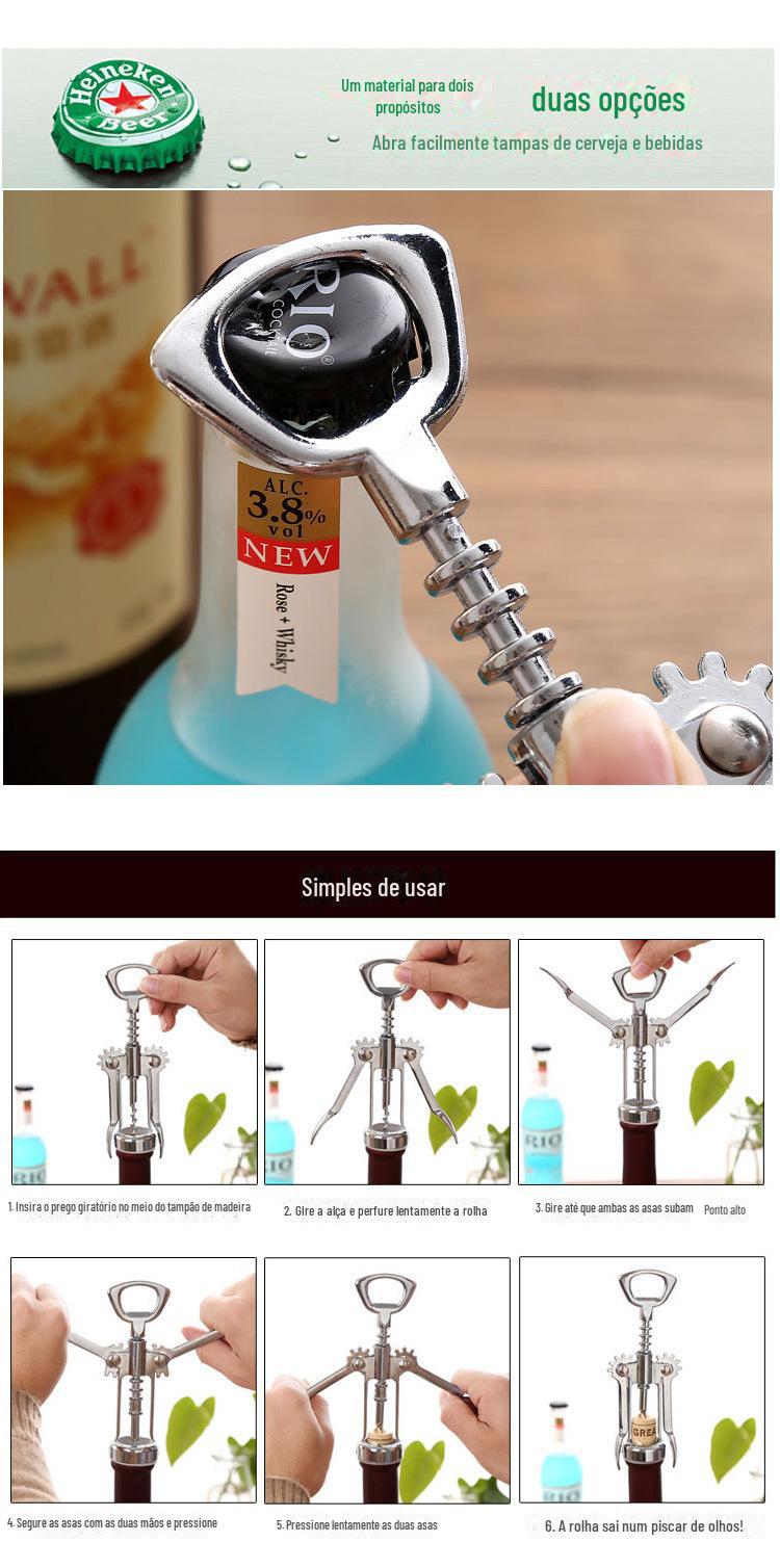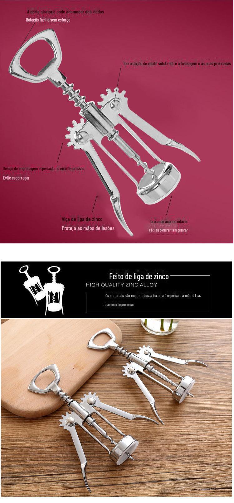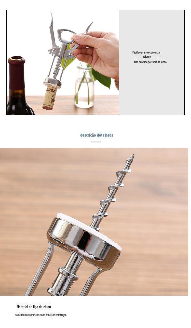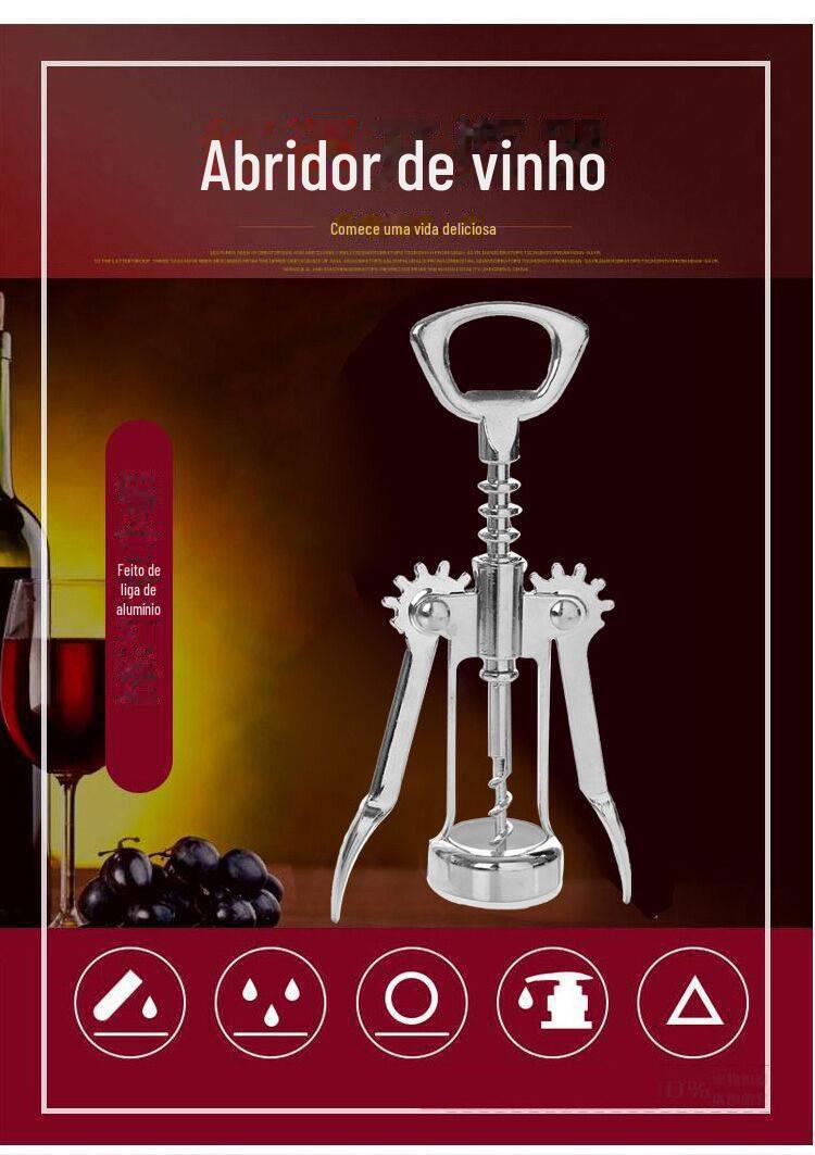 Abridor de vinho criativo de alumínio, abridor de garrafas multifuncional simples, abridor de vinho prateado, abridor de garrafas de vinho