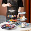Arte nórdica placa de sobremesa cerâmica de três camadas placa de corda de frutas pastelaria hotel restaurante prato de especialidade atacado