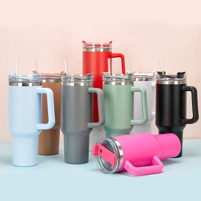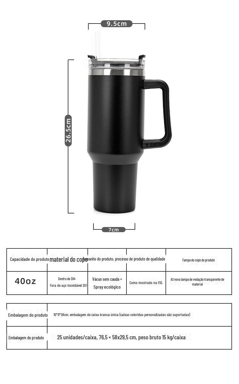 Novo Copo Térmico de Aço Inoxidável 304 40oz para Carro, Portátil, Grande Capacidade, com Alça, Copo para Cerveja com Canudo, Copo para Gelo