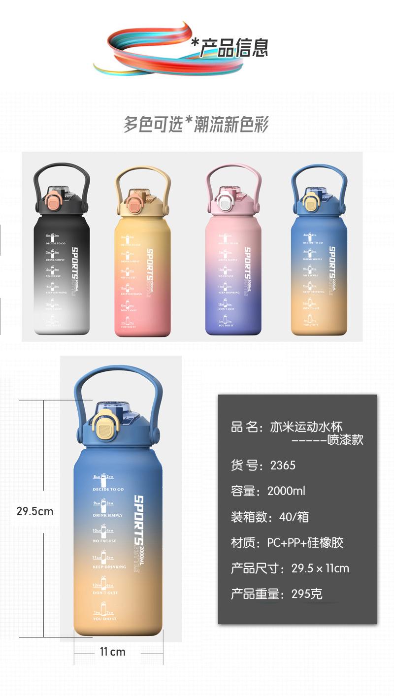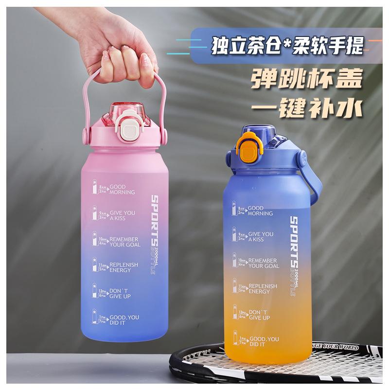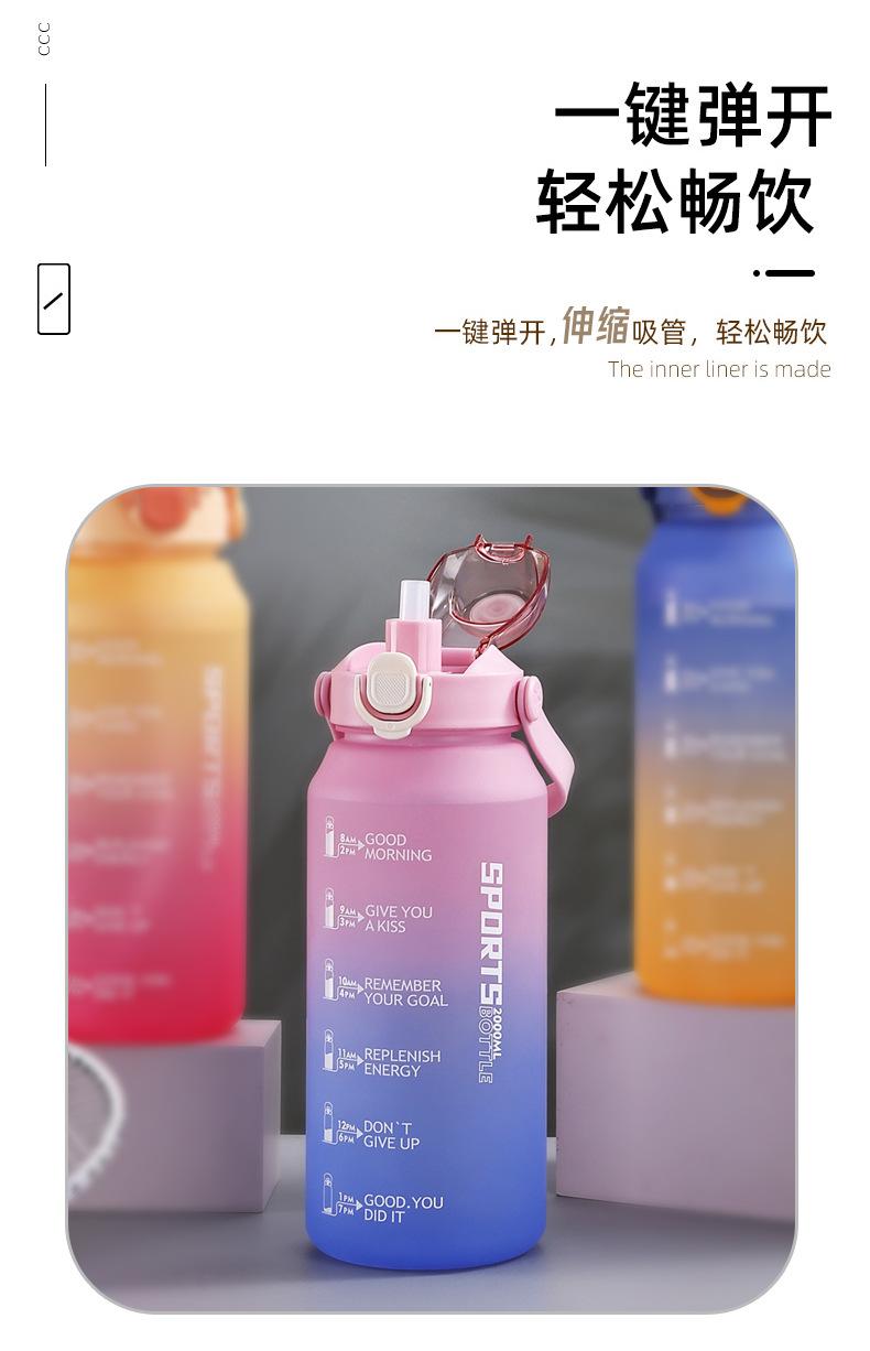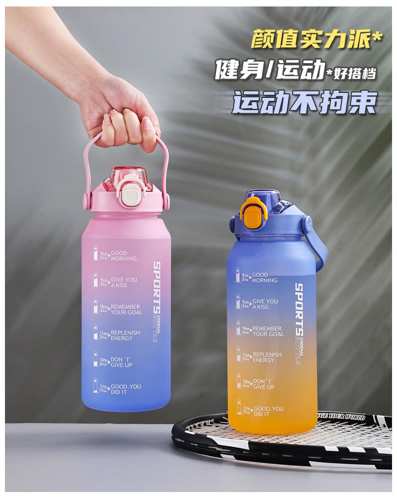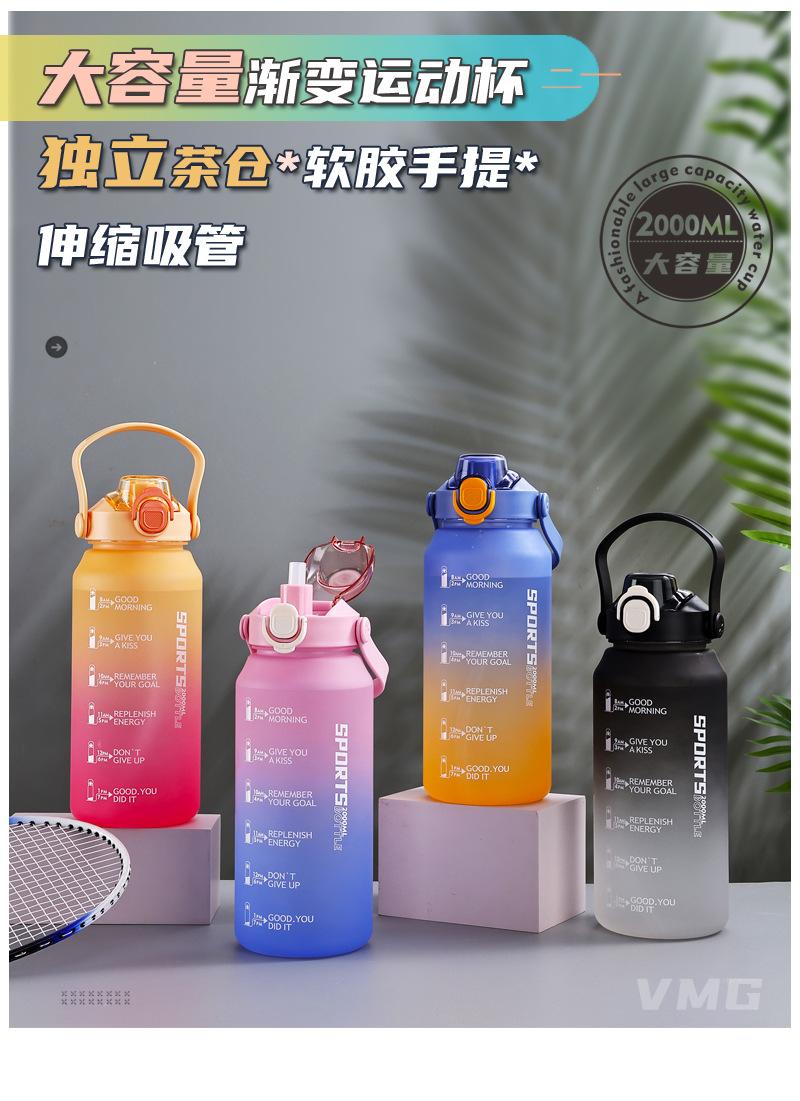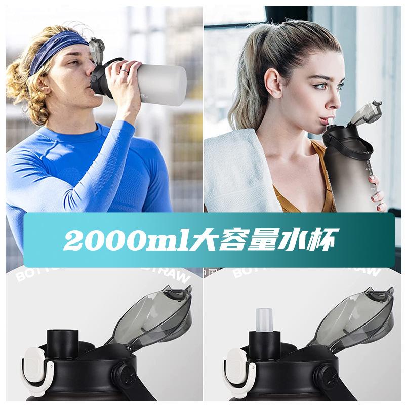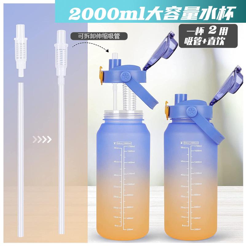 2000ml copo de água grande capacidade meninos e mulheres com chaleira de palha alta cor fosco esportes ao ar livre copo de plástico