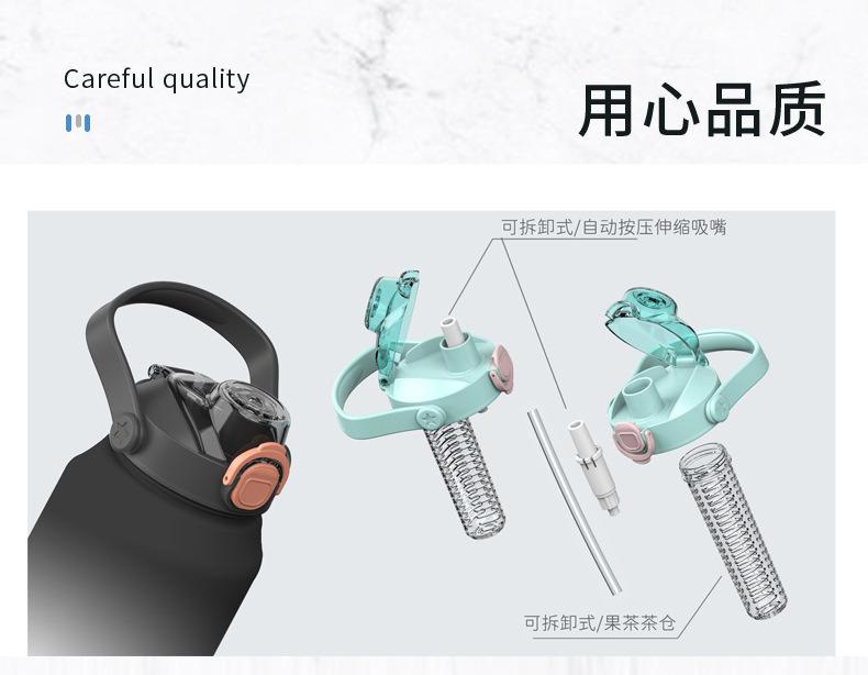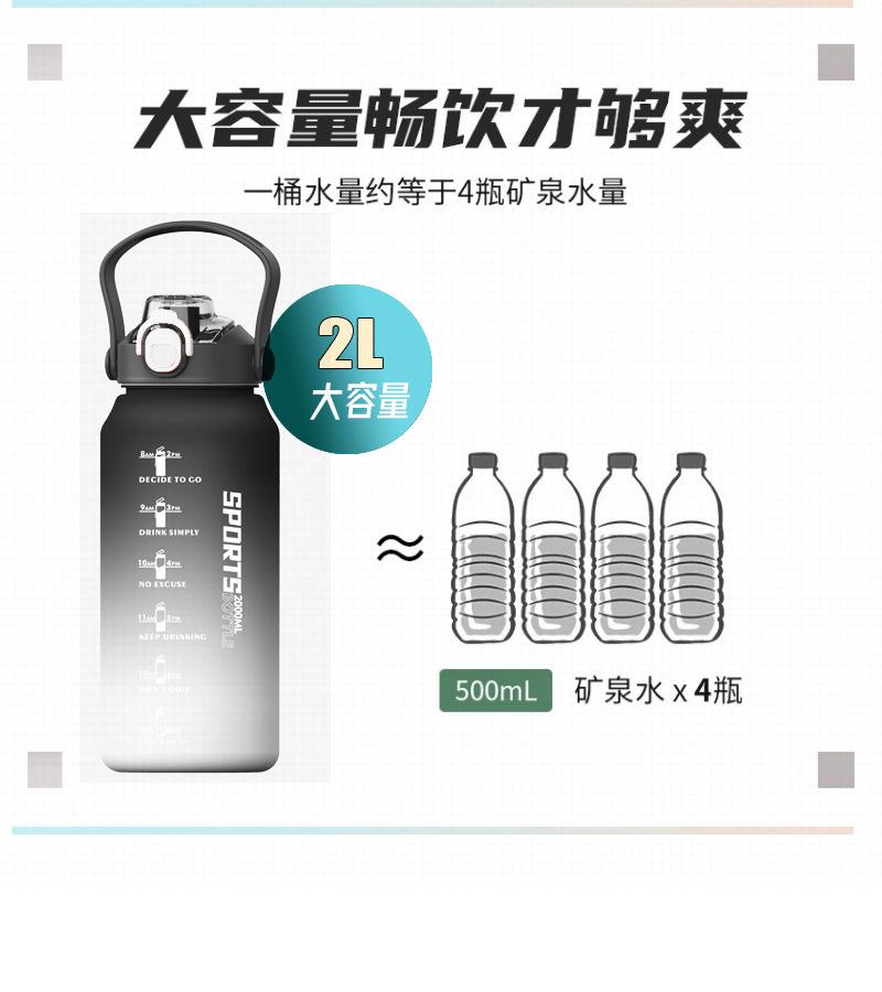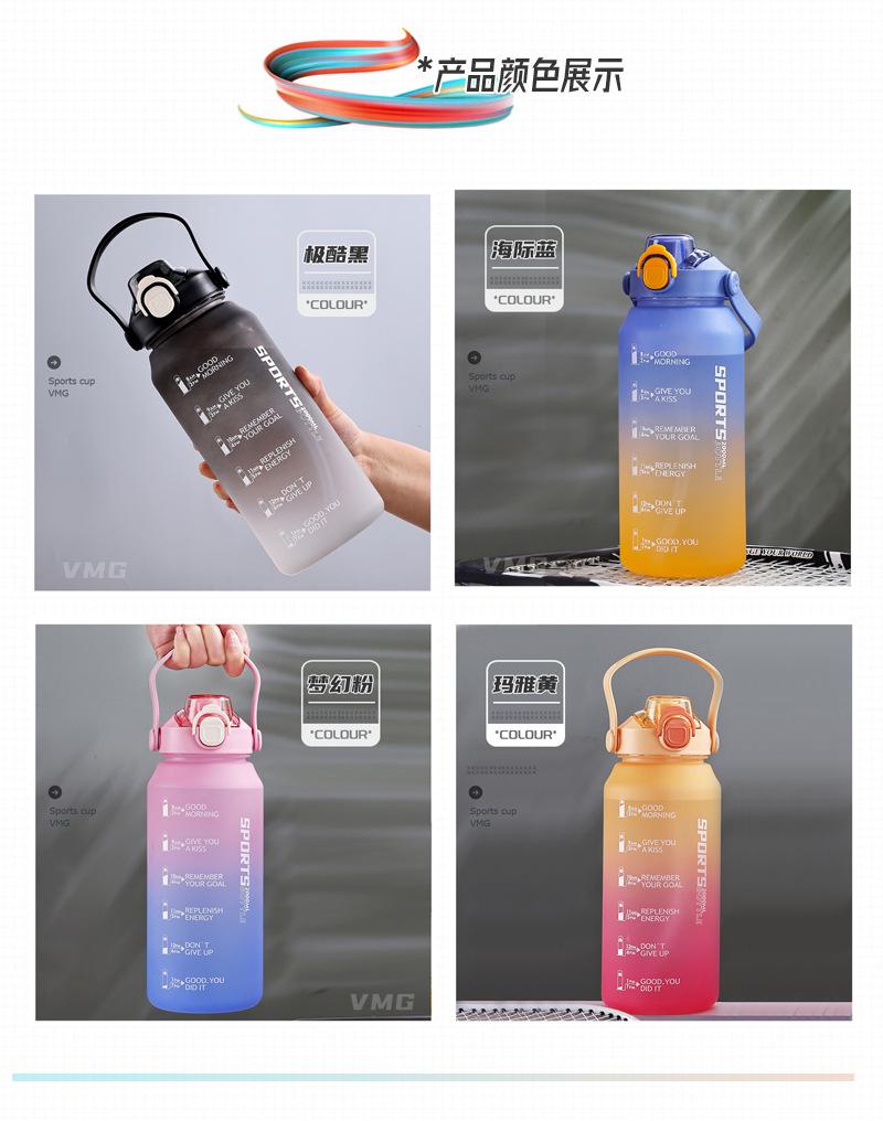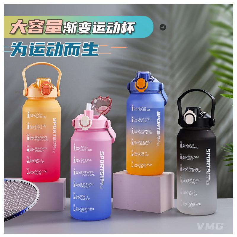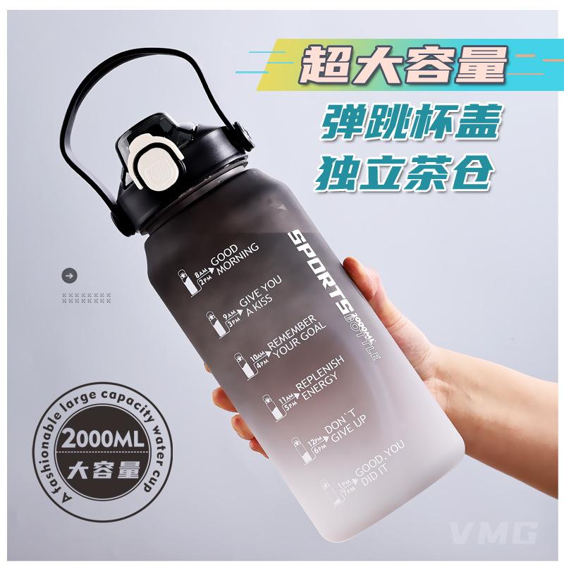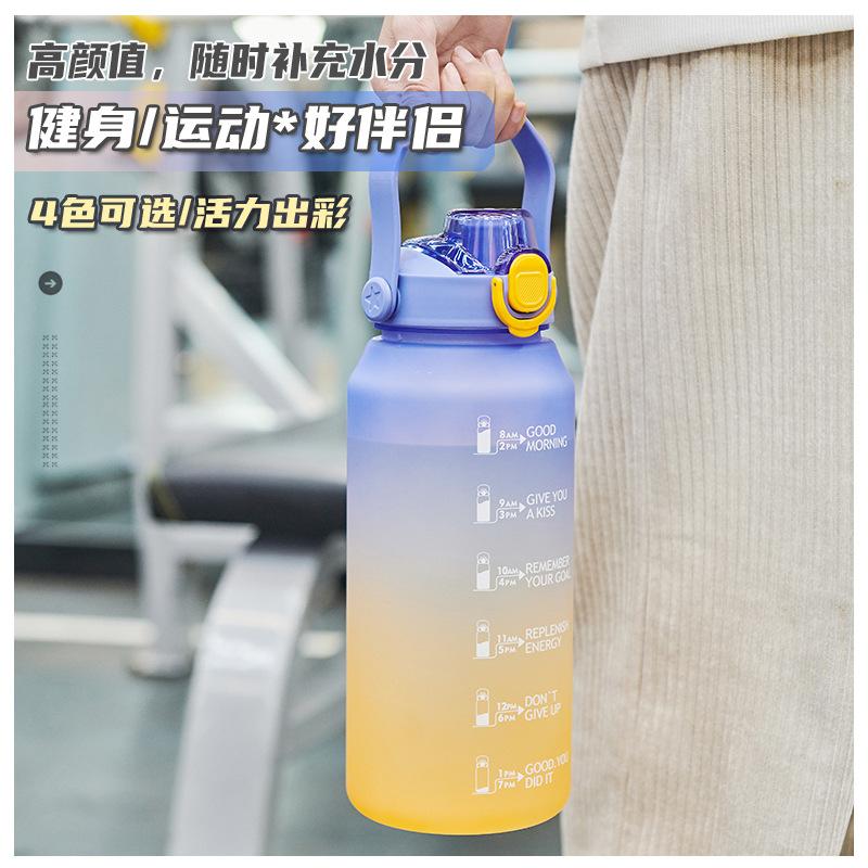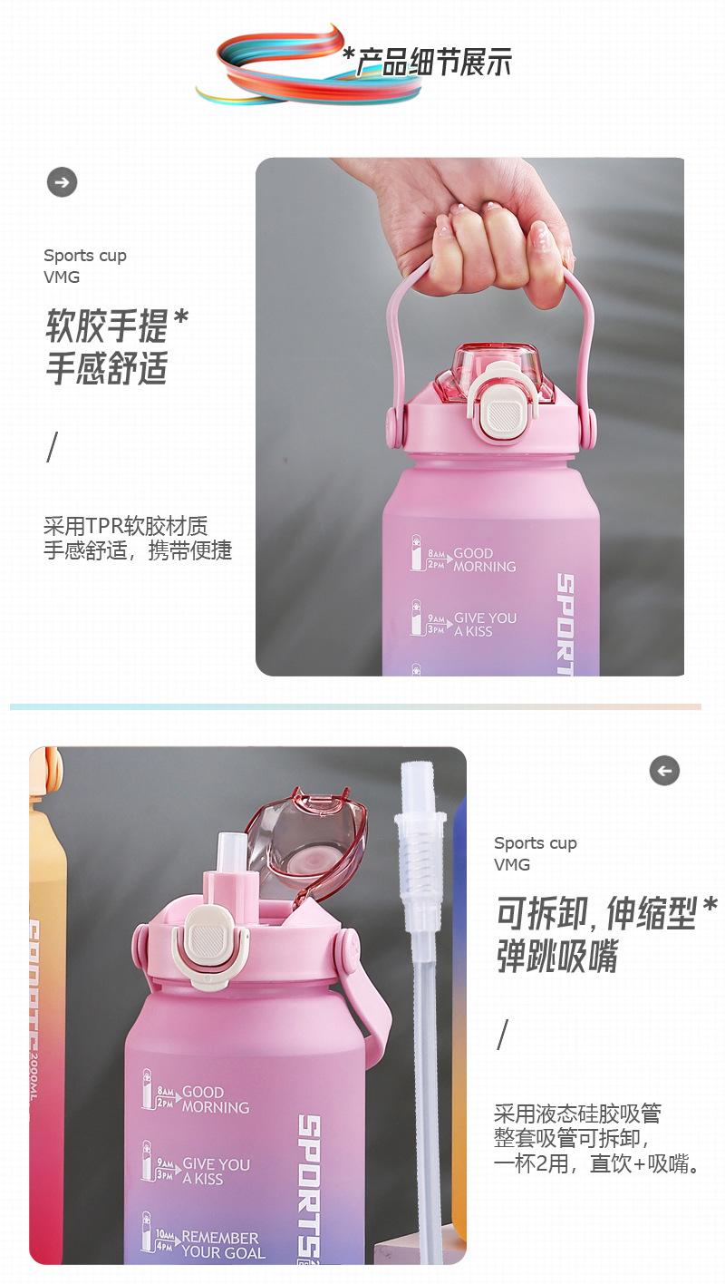 2000ml copo de água grande capacidade meninos e mulheres com chaleira de palha alta cor fosco esportes ao ar livre copo de plástico