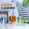 Copo de Vidro Colorido de Borossilicato de Alta Qualidade com Camada Dupla e Alça, Xícara Pequena para Chá para Uso Doméstico, Copo para Café com Leite, Presente, Anti-Escaldante, Moderno e Simples