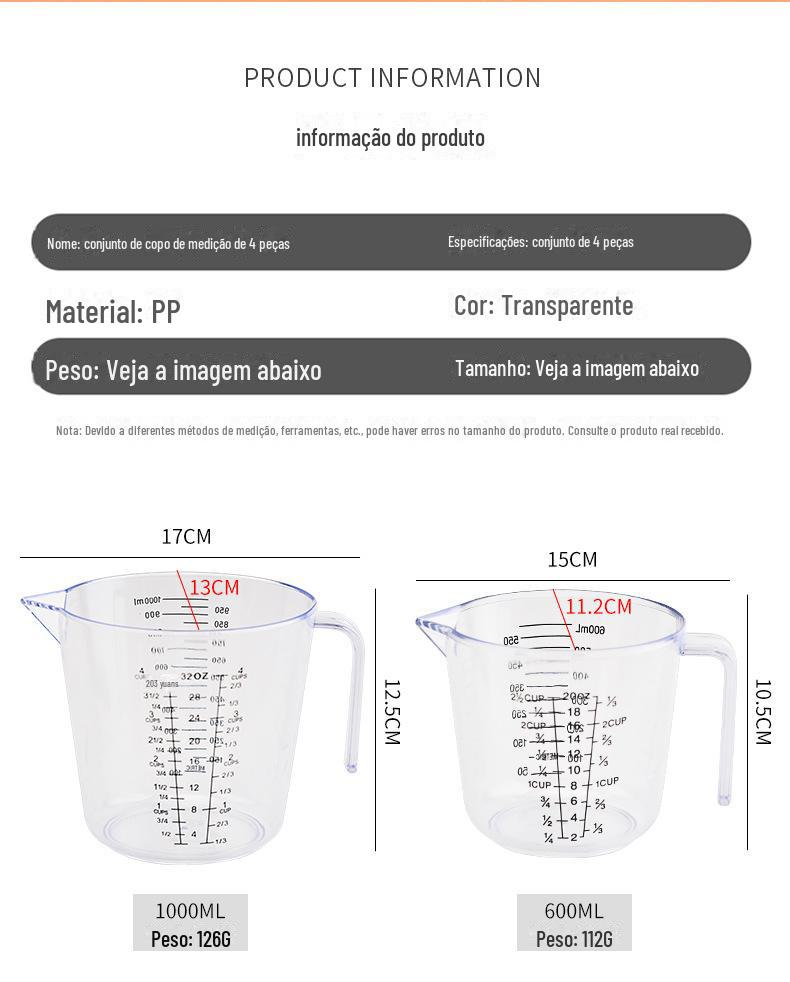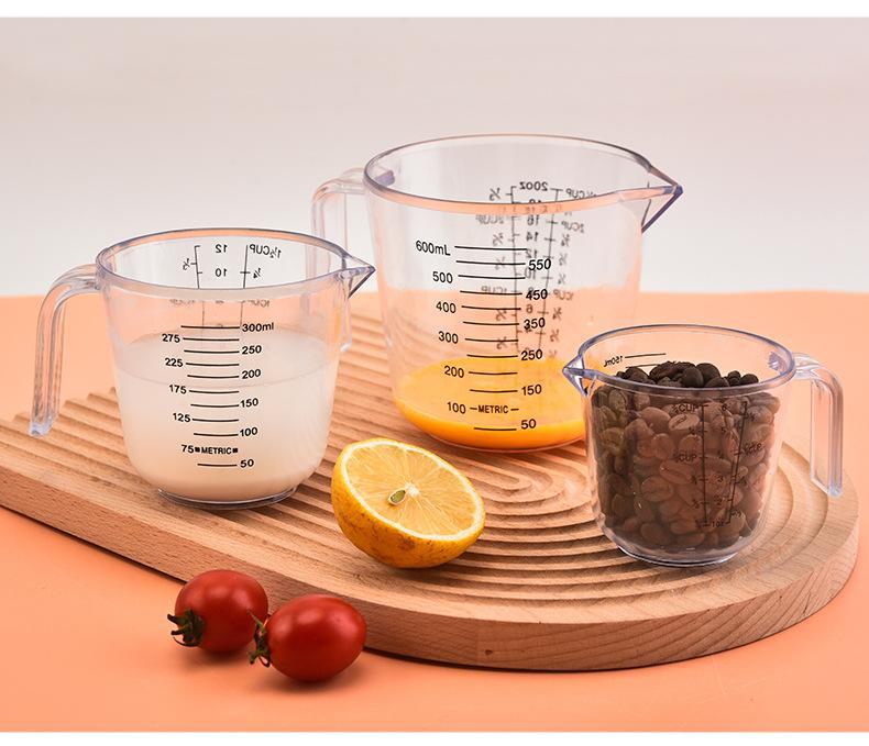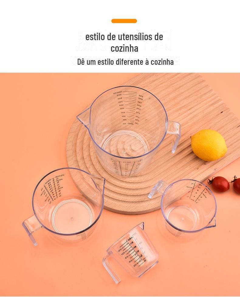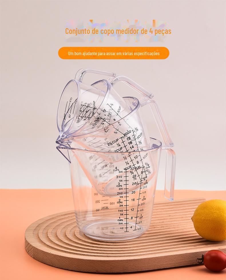 Copo de medição de 4 peças conjunto de plástico copo de medição transparente copo de medição com alça cozinha assando copo de medição com escala copo de medição atacado