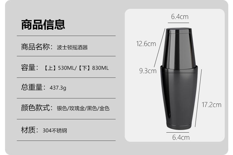 Conjunto de Coqueteleira Boston de Aço Inoxidável 304 de 2 Peças Eletrogalvanizado Preto Ferramentas de Bar Coqueteleira