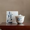 Qingji casa pintada à mão azul e branco cobrir Tigela underglaze cor vaso pinho estilo kung fu chá set Tea Bowl literati cobrir Tigela