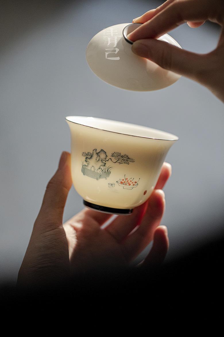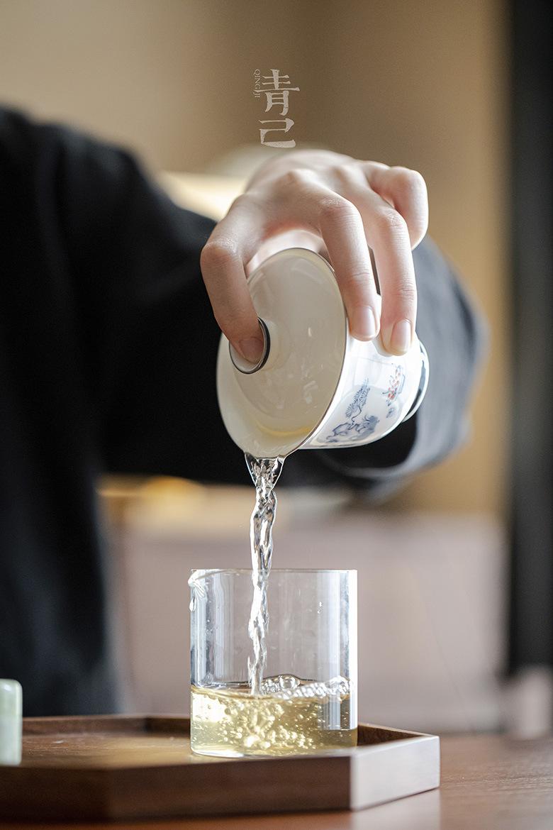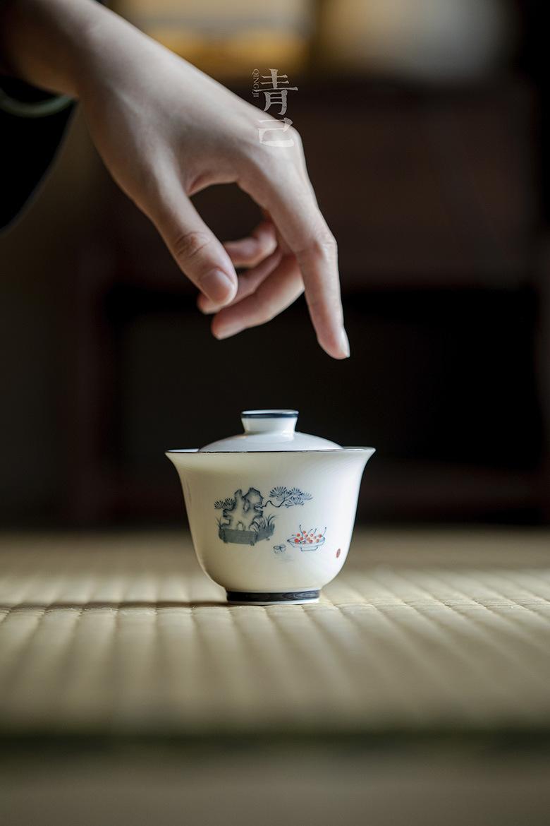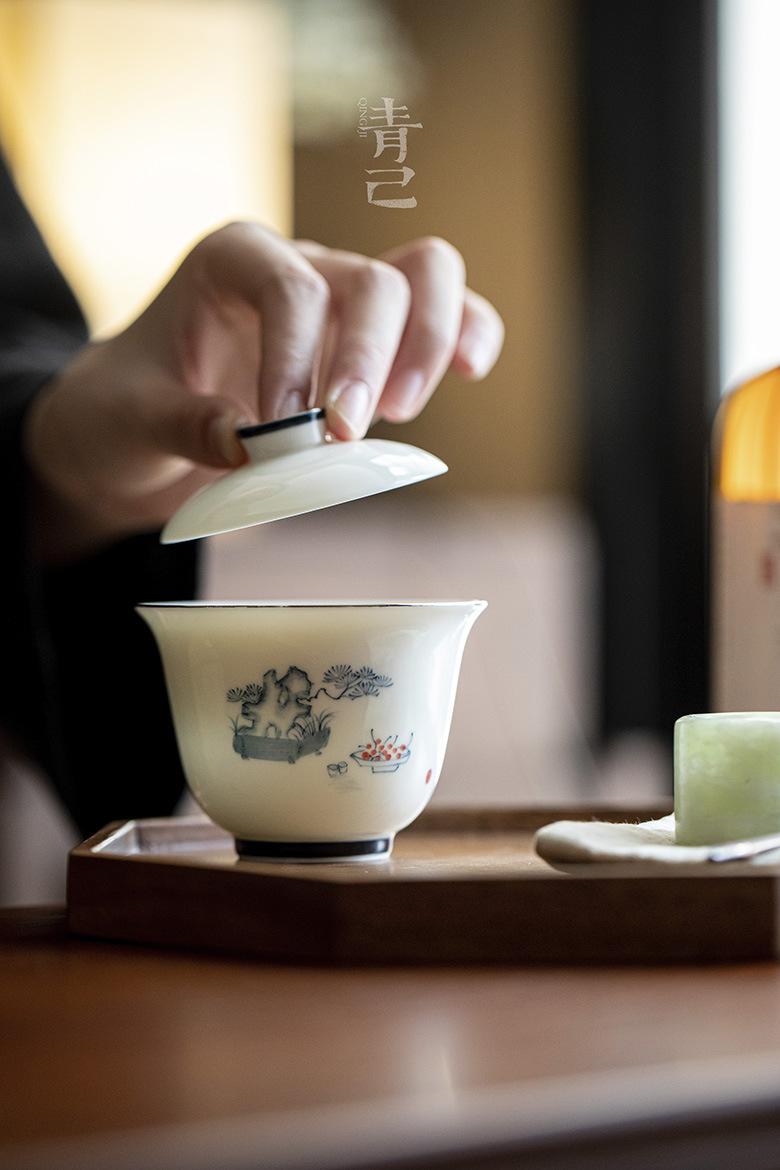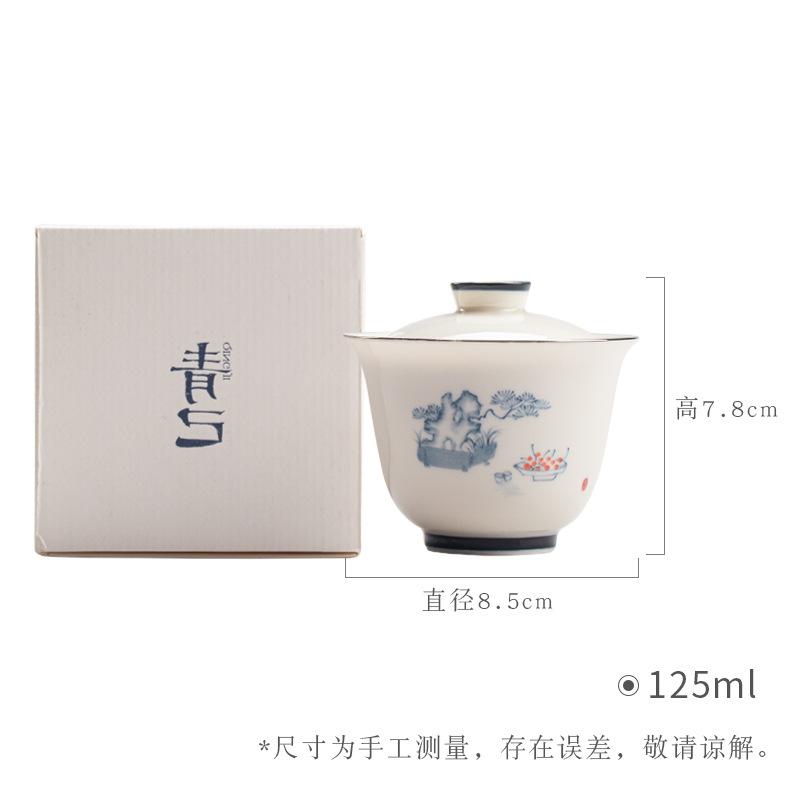 Compre Qingji casa pintada à mão azul e branco cobrir Tigela underglaze cor vaso pinho estilo kung fu chá set Tea Bowl literati cobrir Tigela no atacado no Joom.pro