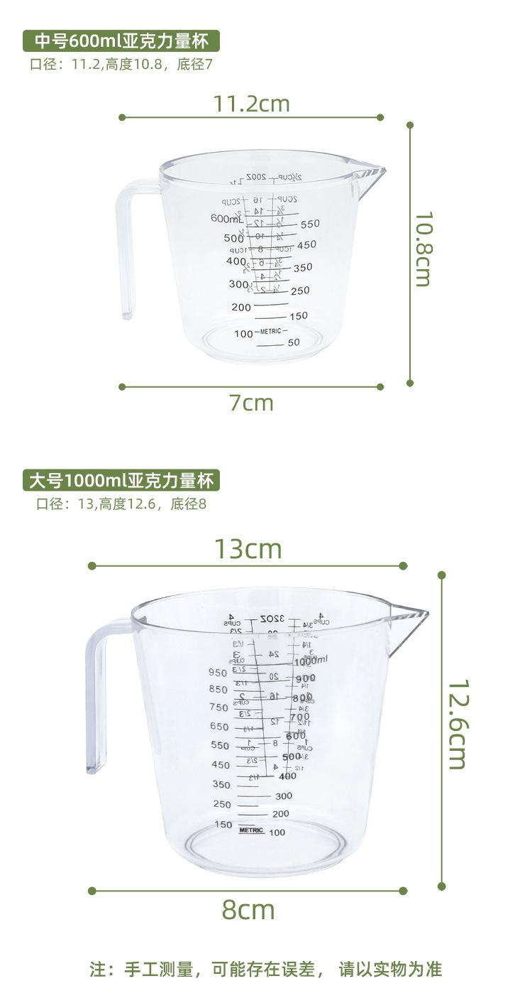 Ferramentas de cozimento: copo de medição transparente plástico copo de medição de grande capacidade 600mL copo medidor escala 300ml