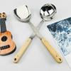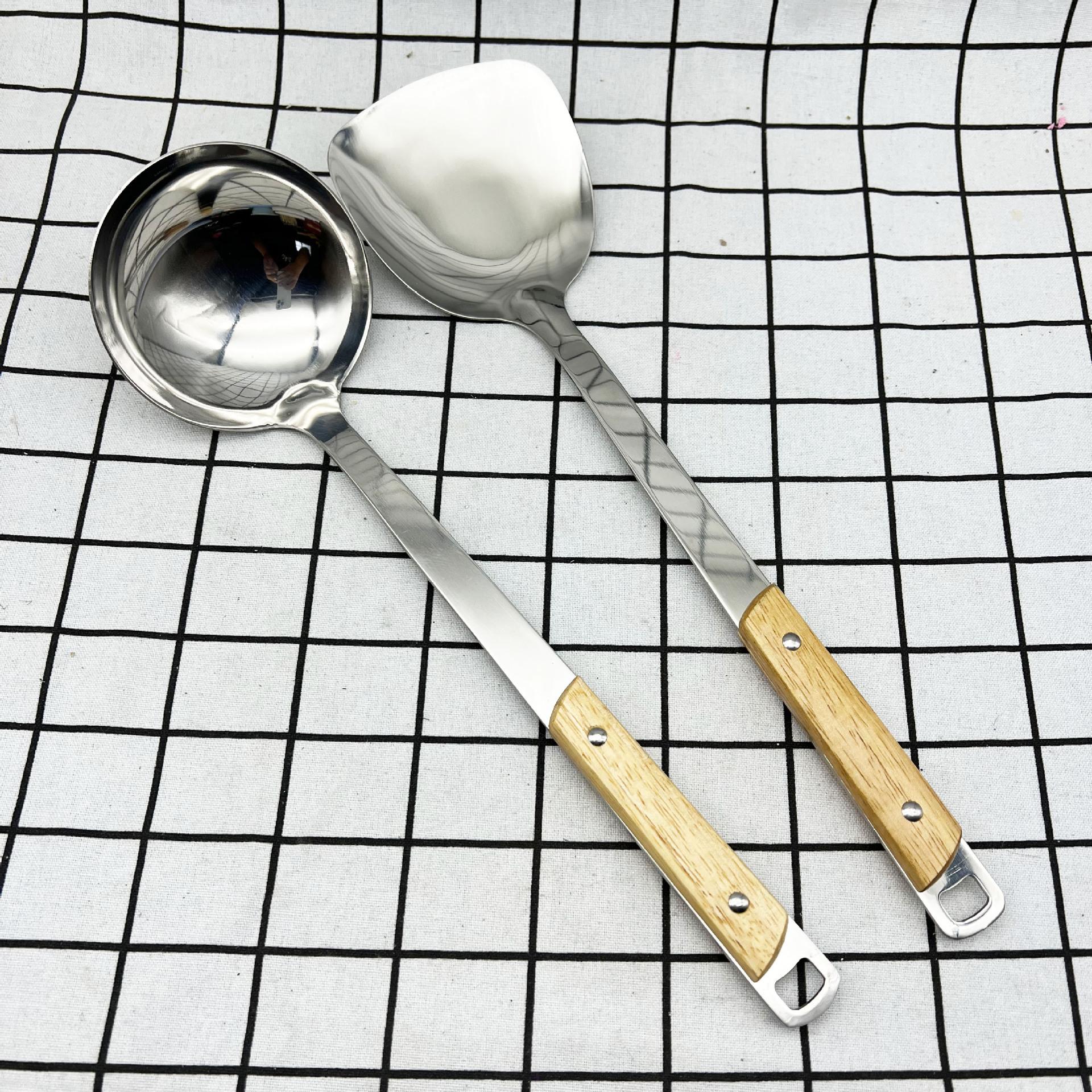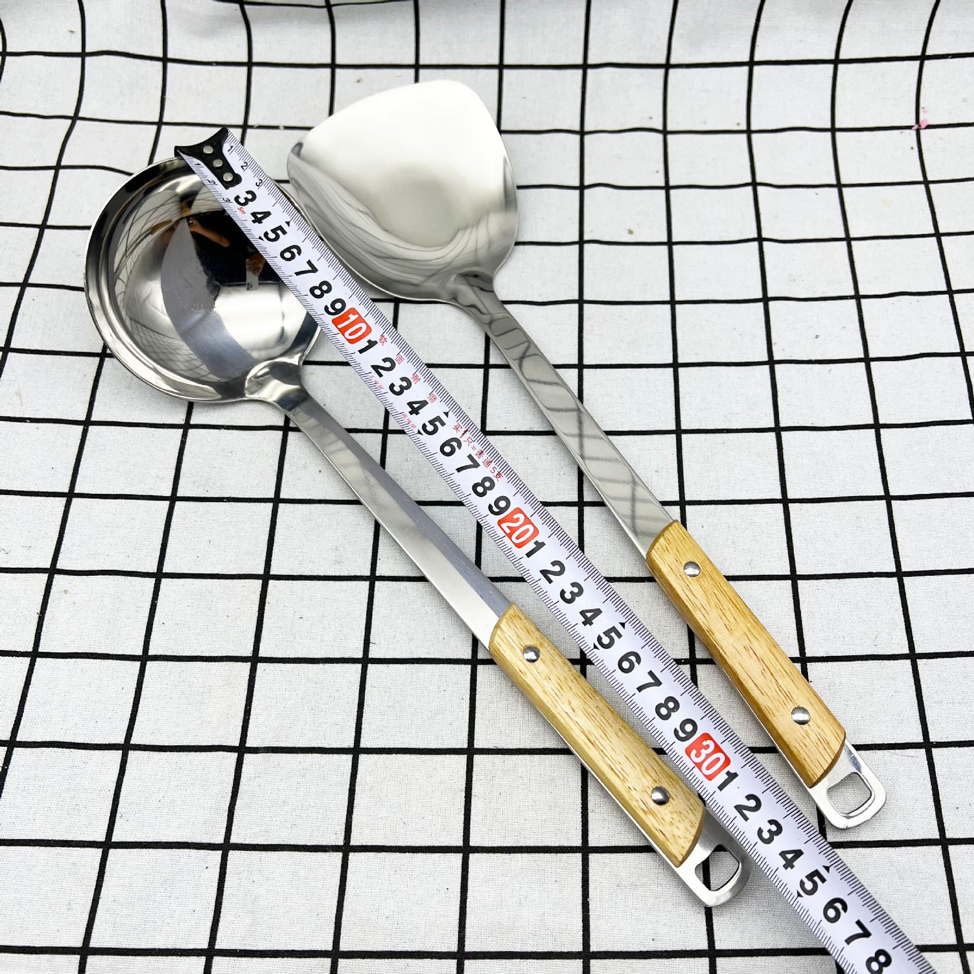 Espátula de aço inoxidável espátula espessada colher conjunto de utensílios de cozinha cabo de madeira maciça espátula de cozinha colher grande espátula de panela